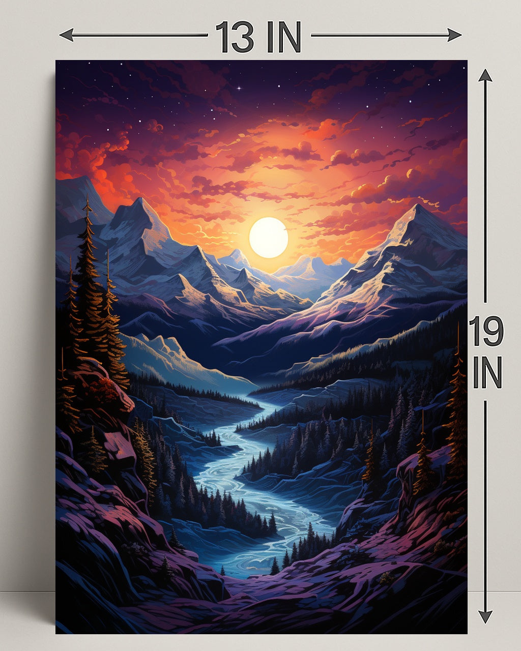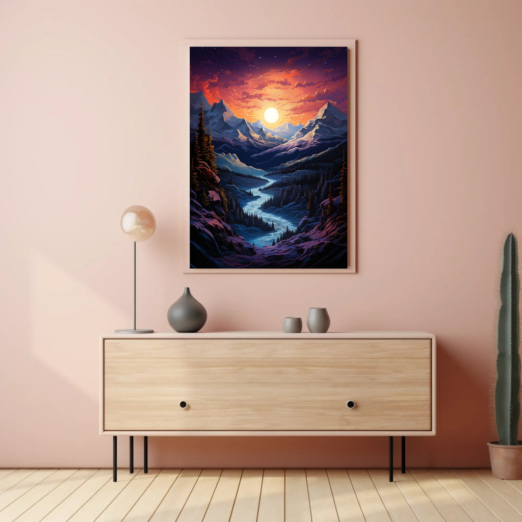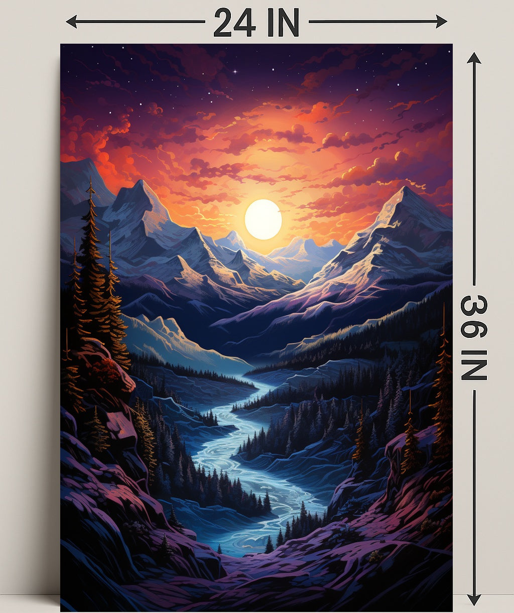 Transform your space with the Majestic Mountain Sunset Poster, an exquisite art print that evokes the serene beauty of nature. This stunning piece of wall art captures the essence of a breathtaking sunset over majestic mountains, making it a perfect addition for decor lovers and wanderlust spirits alike. Add charm and character to any room while indulging in the tranquility of this scenic masterpiece.