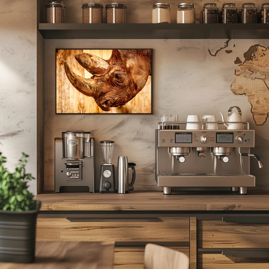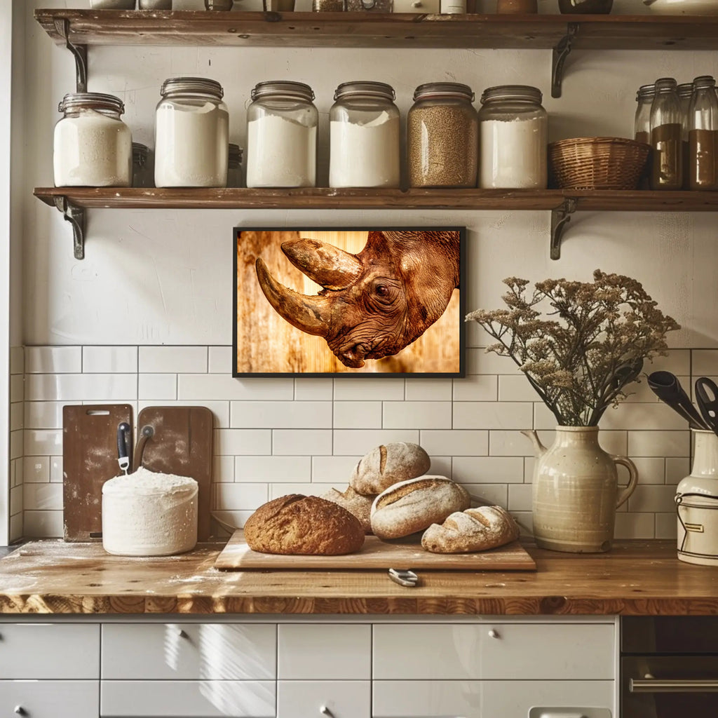 Immerse yourself in the raw beauty of nature with this stunning poster capturing the powerful presence of a rhinoceros. The close-up image focuses intently on the rhino's formidable horn, symbolizing strength and the critical need for wildlife conservation. The detailed textures of the rhino's skin invite you to marvel at the imposing grandeur of one of our planet's most magnificent creatures. Perfect for animal lovers, conservation advocates, or anyone seeking to bring a touch of wilderness elegance to their space. Showcase this striking reminder of Earth's breathtaking biodiversity today.