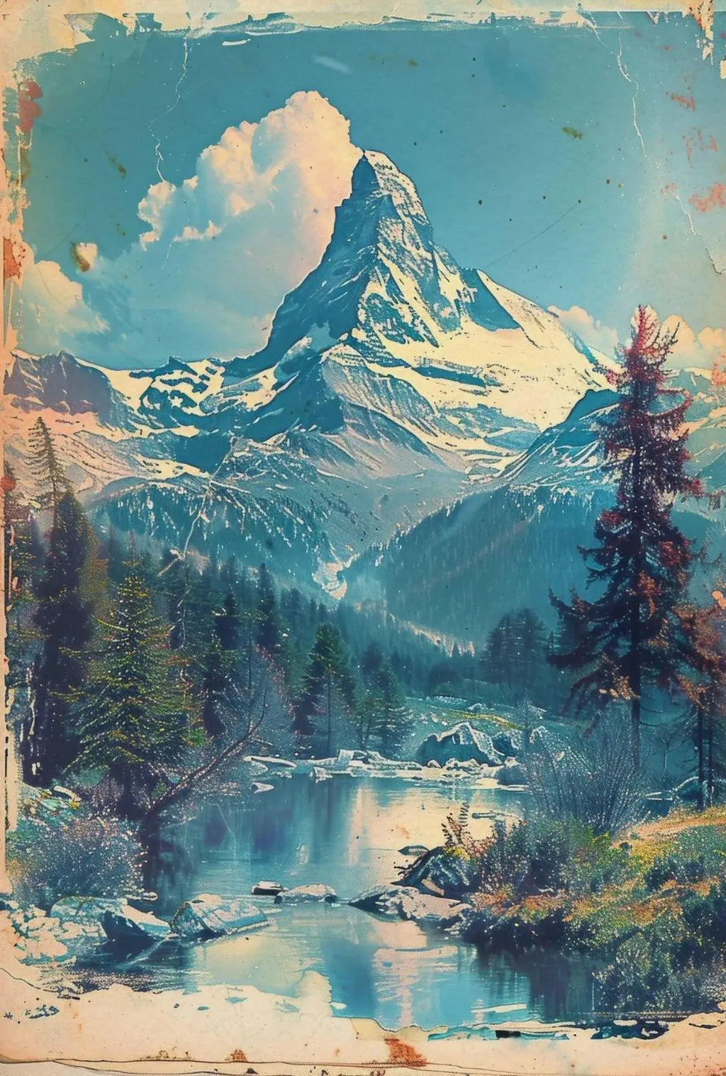 Majestic Snow-Capped Mountain Tranquil Scenic Travel Poster