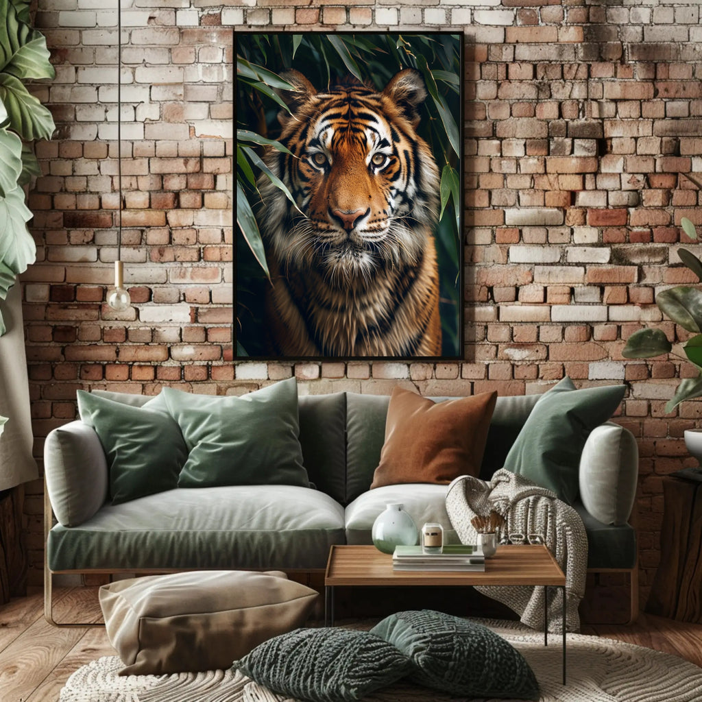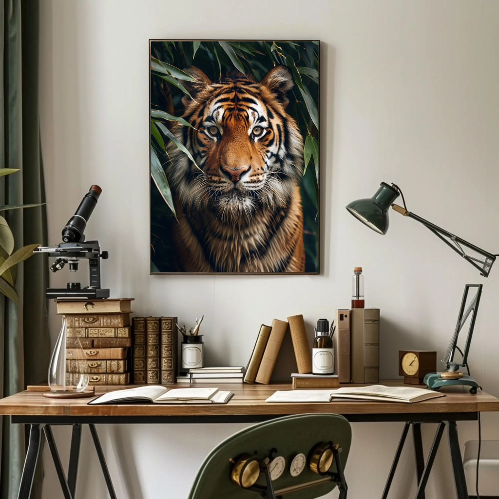 - Striking focal point: A close-up composition highlights the tiger's expressive eyes and textured fur, delivering instant visual impact for living rooms, bedrooms, offices, or galleries.