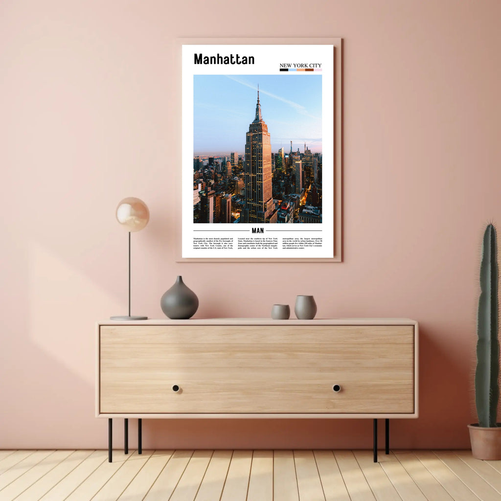 Manhattan Skyline Empire State Building Travel Poster by PosterGoat brings the unmistakable drama of New York City into your home with a bold, modern travel poster that celebrates the Empire State Building and the iconic Manhattan skyline.