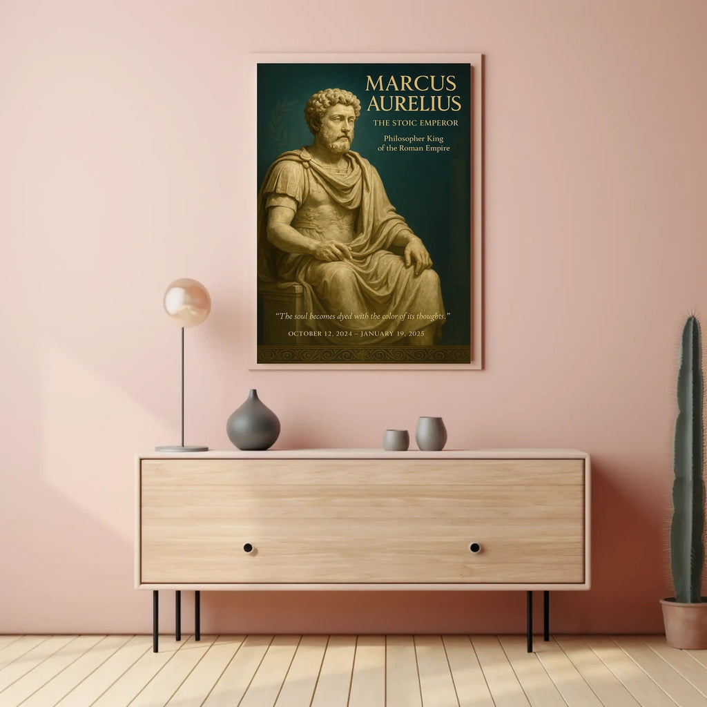 This artful poster brings Marcus Aurelius, the Stoic emperor, to your wall with scenes inspired by real-world scenery. It's a casual, timeless piece of wall art that fits modern homes and travel-loving hearts. Hang it in a living room, bedroom, or study to add an easy-to-love touch of history and calm.