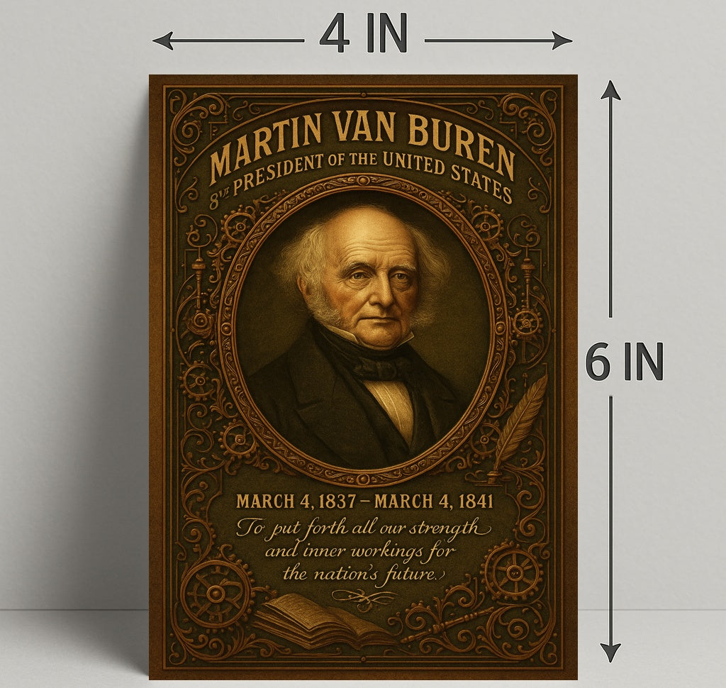 Martin Van Buren 8th President Poster — an elegant, museum-style poster from PosterGoat that brings 19th-century presidential history into your home with timeless design and rich, antique-inspired detail.