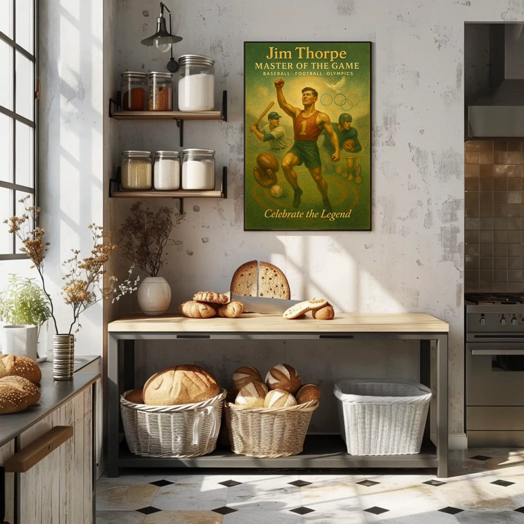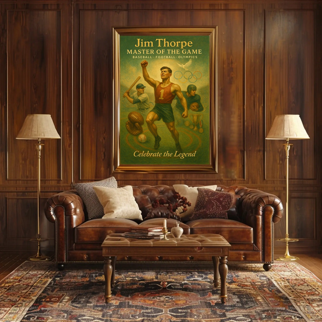 Iconic tribute to athletic versatility — a bold portrayal of Thorpe’s achievements across baseball, football, and the Olympics, igniting pride and conversation in any room.