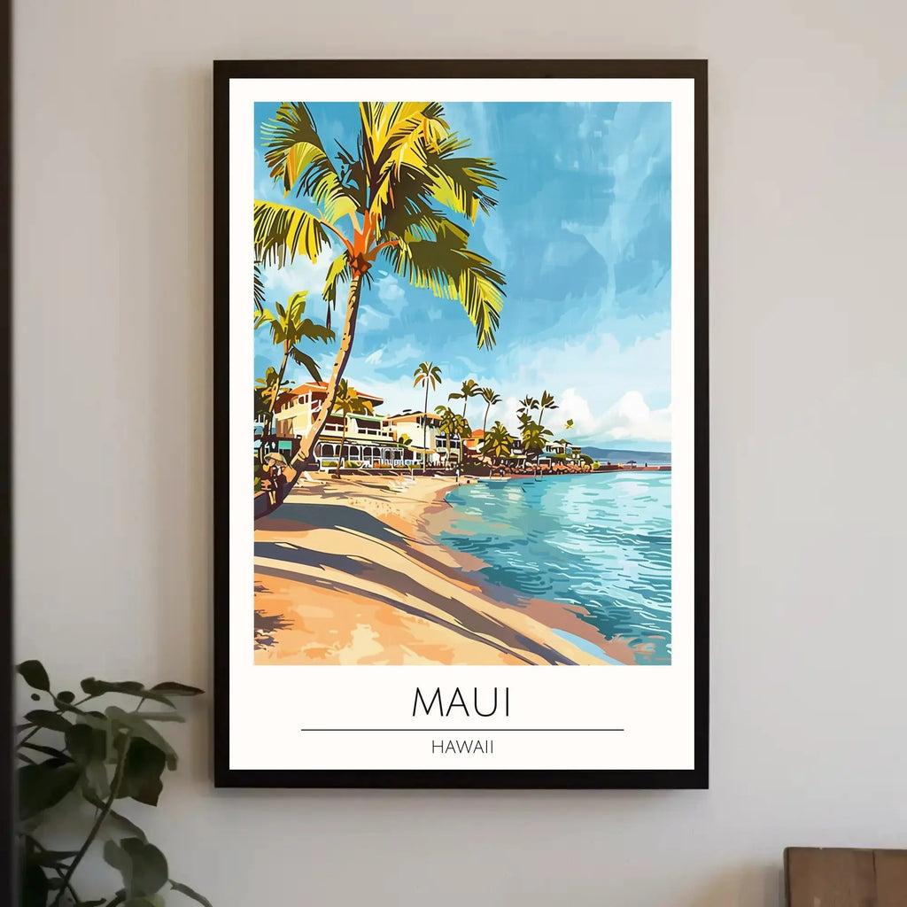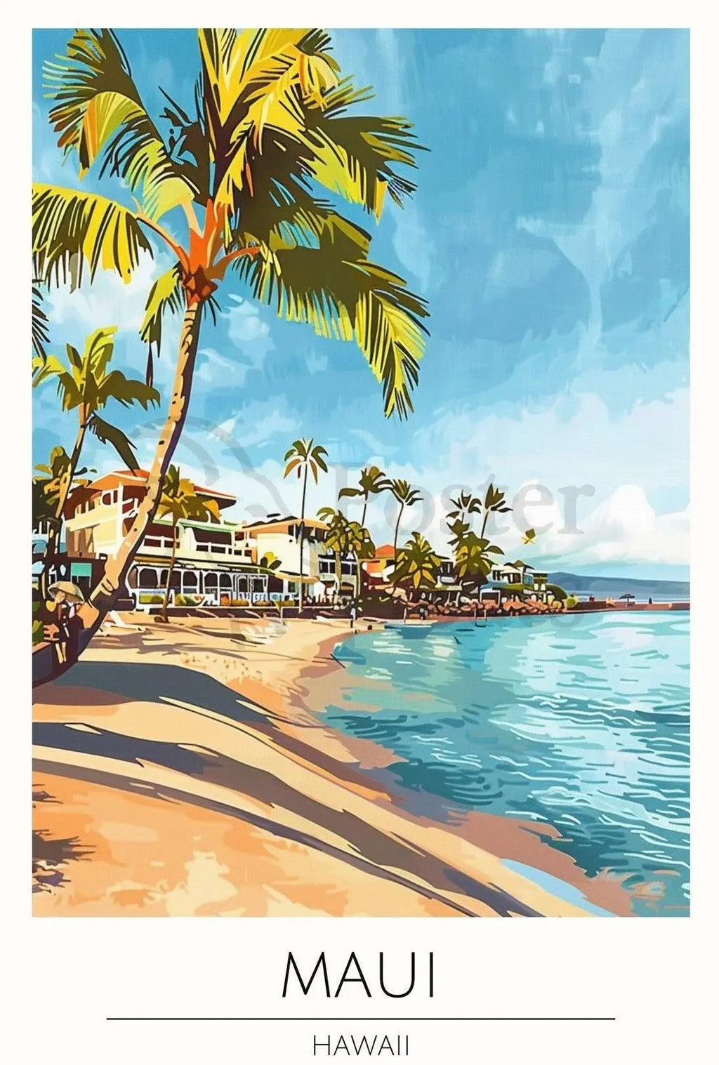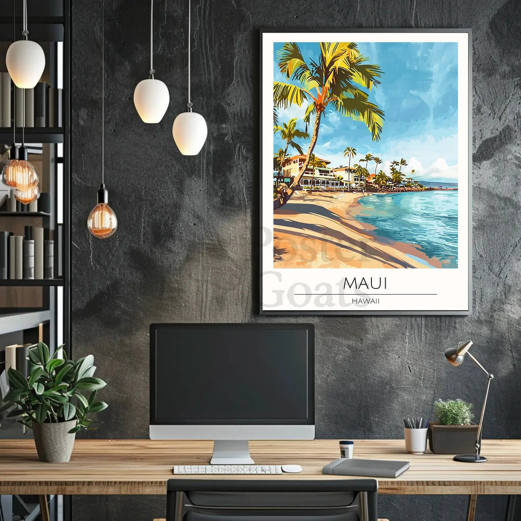 Elevate your space with a piece that transports you to warm sand and gentle waves—order the Maui Beach Vintage Travel Poster from PosterGoat today and add a touch of island paradise to your home.