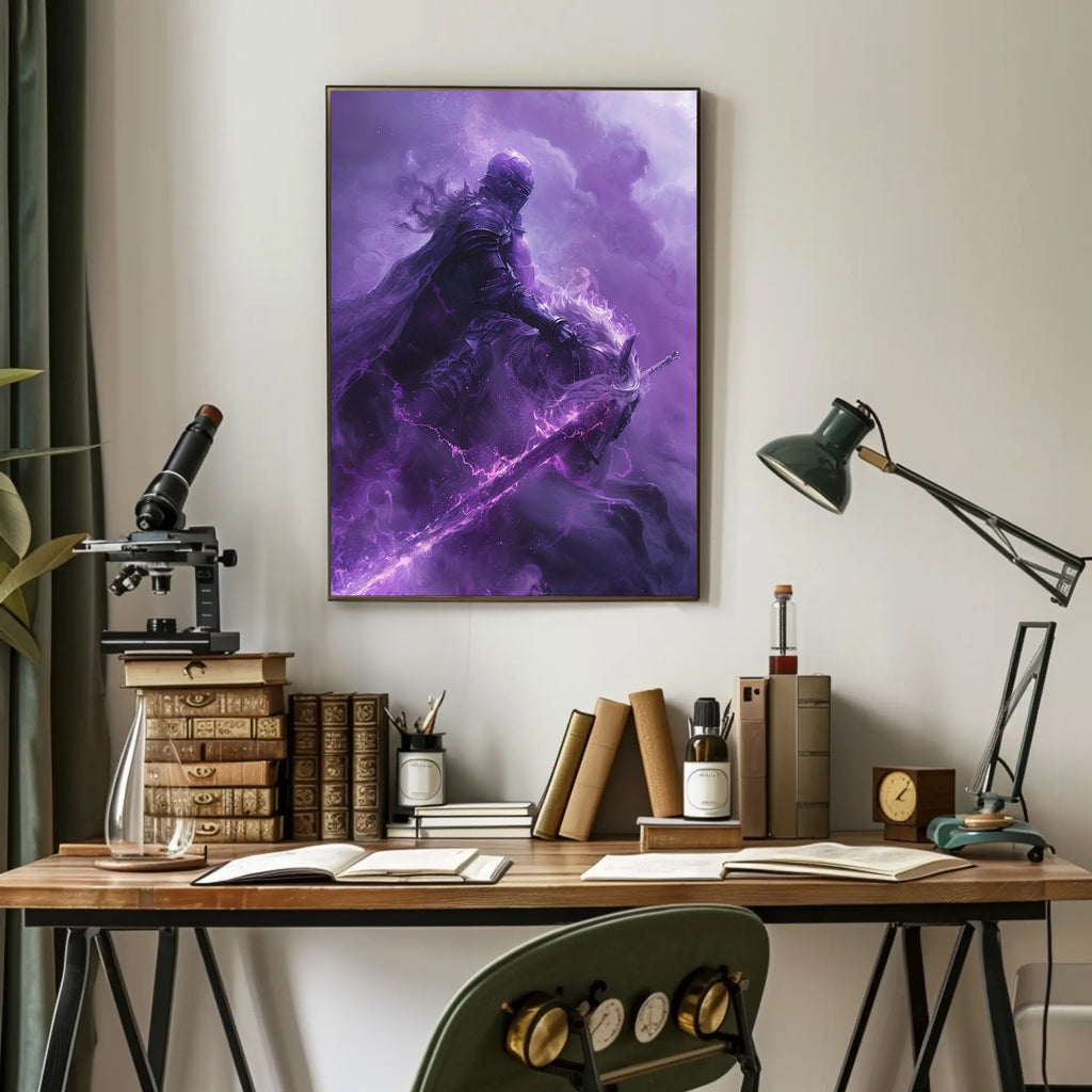 Bring epic battles, mystical creatures, and an otherworldly purple aura into your space. Order the Medieval Knight on Mystical Horse poster from PosterGoat today and transform your wall into a scene from legend.