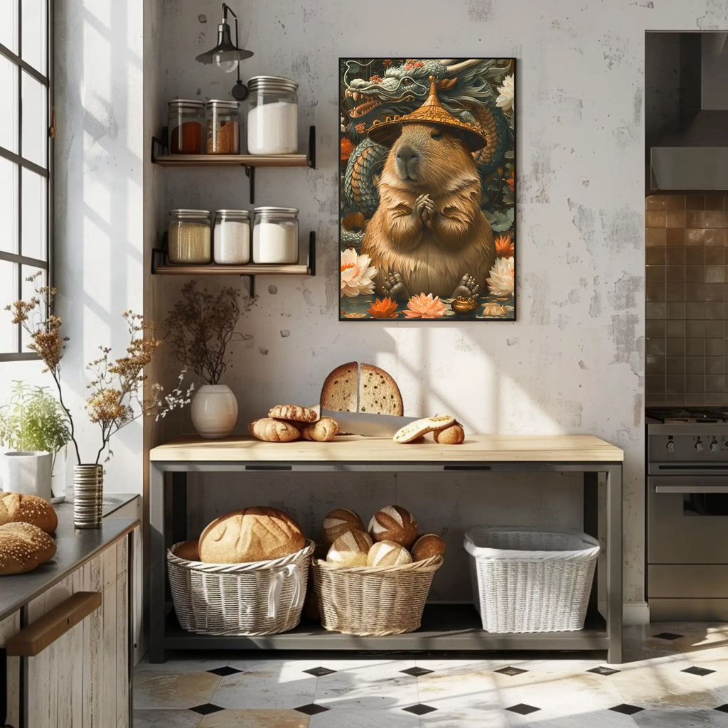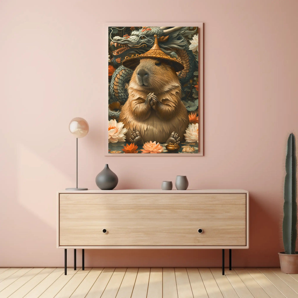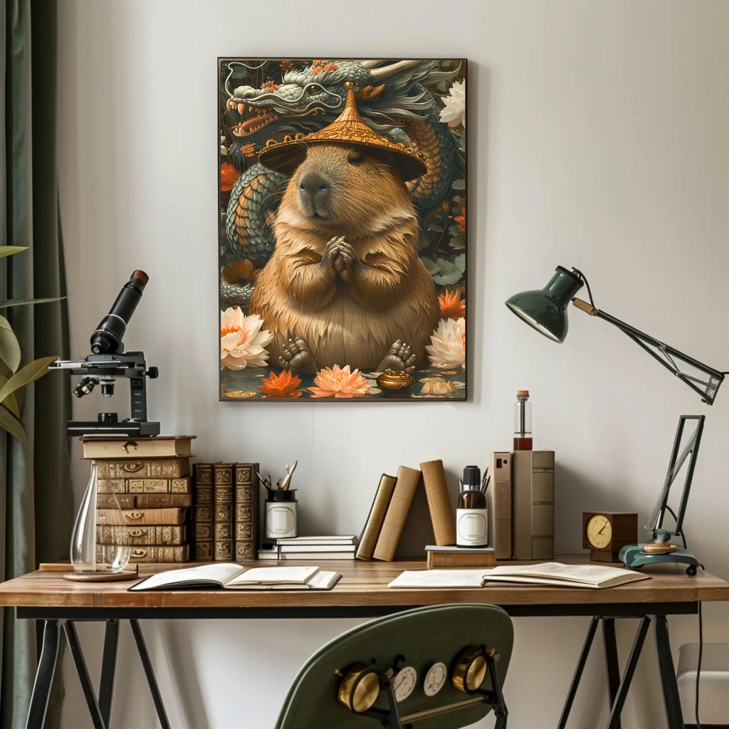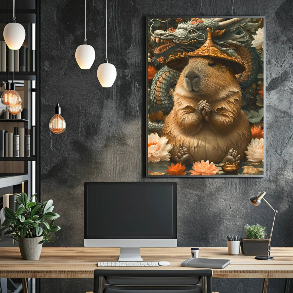 Transform your space and indulge in the charm of the Meditative Capybara with Dragon Poster. Don't miss out on this captivating piece; order yours today to bring a slice of tranquility into your home!