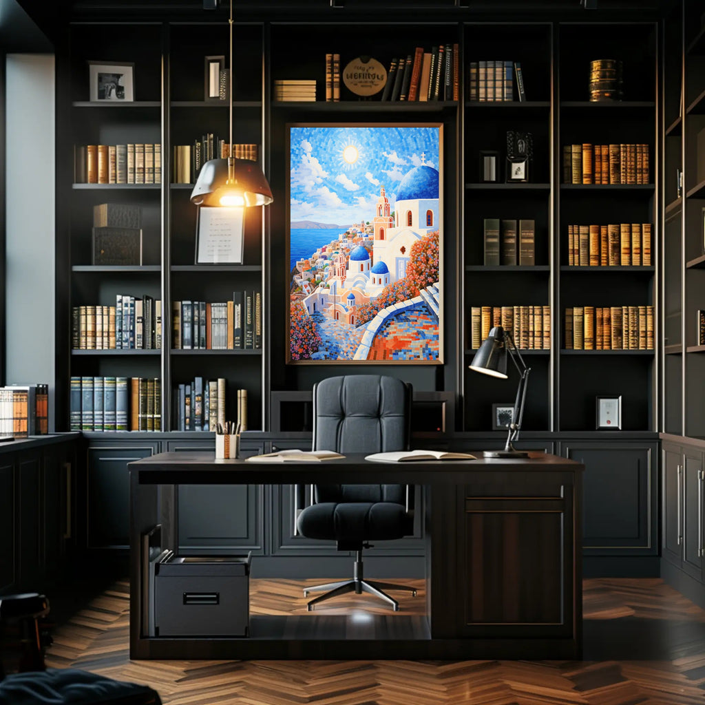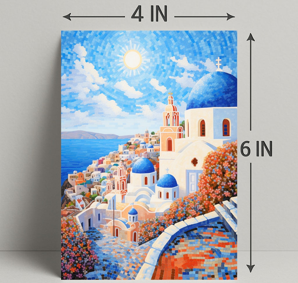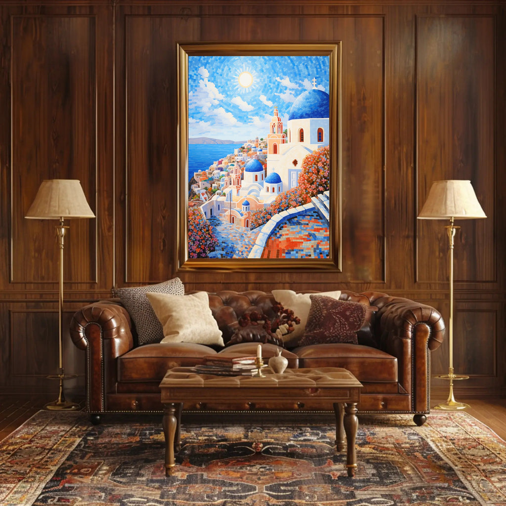 Scenic Mediterranean mood: Evokes seaside warmth and timeless architecture — perfect for creating a travel-inspired focal point in living rooms, bedrooms, or entryways.