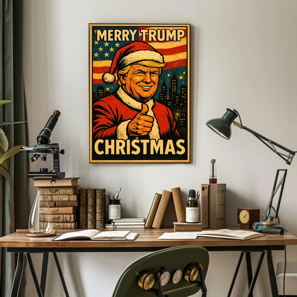 Printed with precision and made to inspire, this artwork is more than decoration—it’s a conversation piece that connects history, culture, and style. Bring Merry Trump Christmas Poster into your home, classroom, or office today and let your walls tell a powerful story.