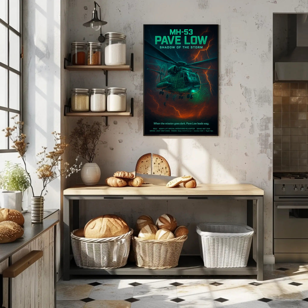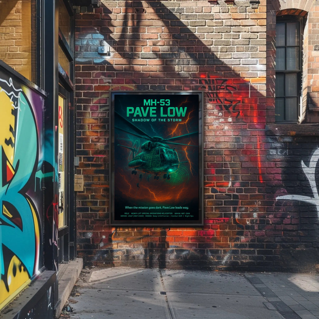 Add a dramatic focal point to your posters, prints, & visual artwork collection — order the MH-53 Pave Low – Shadow of the Storm Poster from PosterGoat today and transform your space with aviation-grade style.