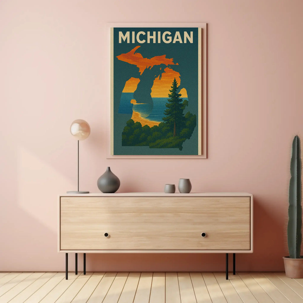 Bring a piece of Michigan’s sunset home — add the PosterGoat Michigan Scenic Vintage Travel Poster to your cart today and transform your walls with timeless, scenic wall art.
