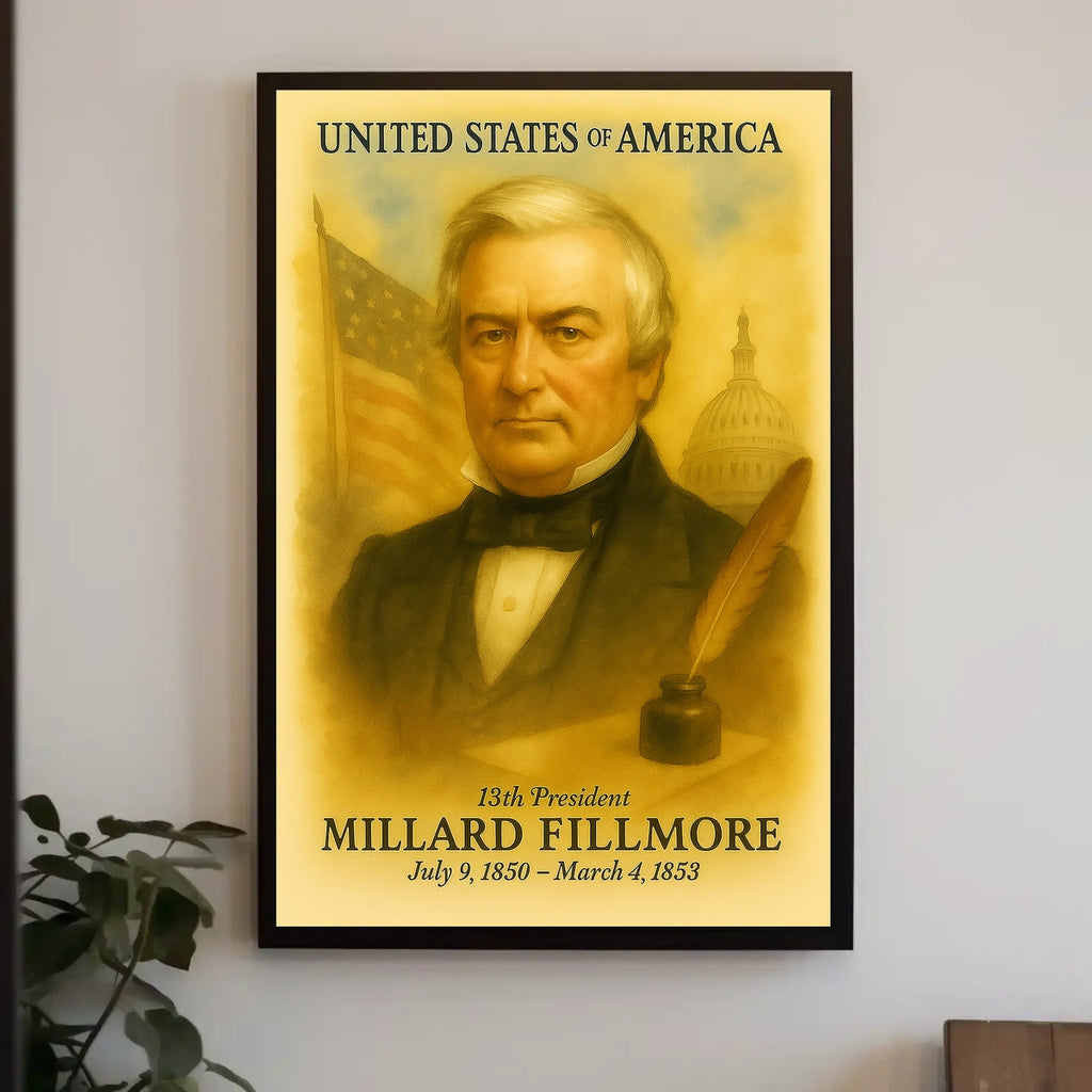 Millard Fillmore 13th President of the United States Vintage Watercolor Poster brings a dignified, historically inspired portrait to your wall. The warm watercolor tones and classic typography offer a timeless, gallery-quality look that fits any study, living room, or office with ease.