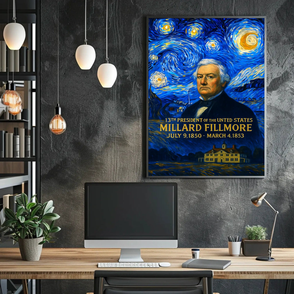 Elevate your wall with a piece that sparks conversation and honors a pivotal era in U.S. history. Add this timeless Millard Fillmore poster to your collection today and transform your space with a touch of historical artistry.