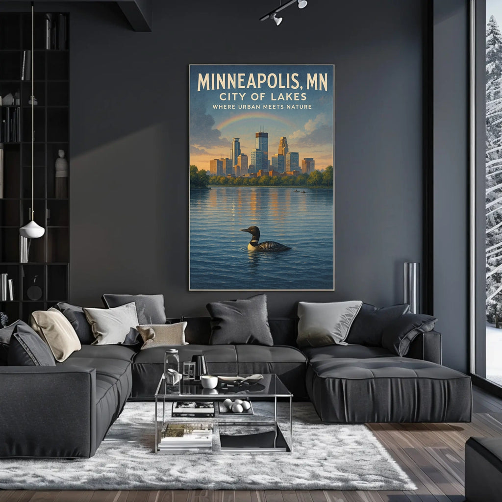 Capture the spirit of Minneapolis City of Lakes with this poster. It's designed for decor lovers and wanderers alike, offering a charming visual inspired by real-world scenery. The minimalist digital-painting style makes the scene feel fresh and modern, while the soft colors blend with most rooms. Perfect for bedrooms, living rooms, or home offices, it adds a subtle travel vibe without shouting for attention.