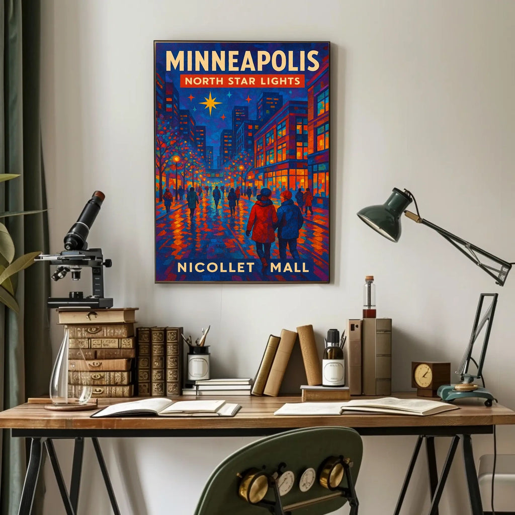 Printed with precision and made to inspire, this artwork is more than decoration—it’s a conversation piece that connects travel, culture, and style. Bring the Minneapolis North Star Lights Poster into your home, classroom, or office today and let your walls tell a luminous story.