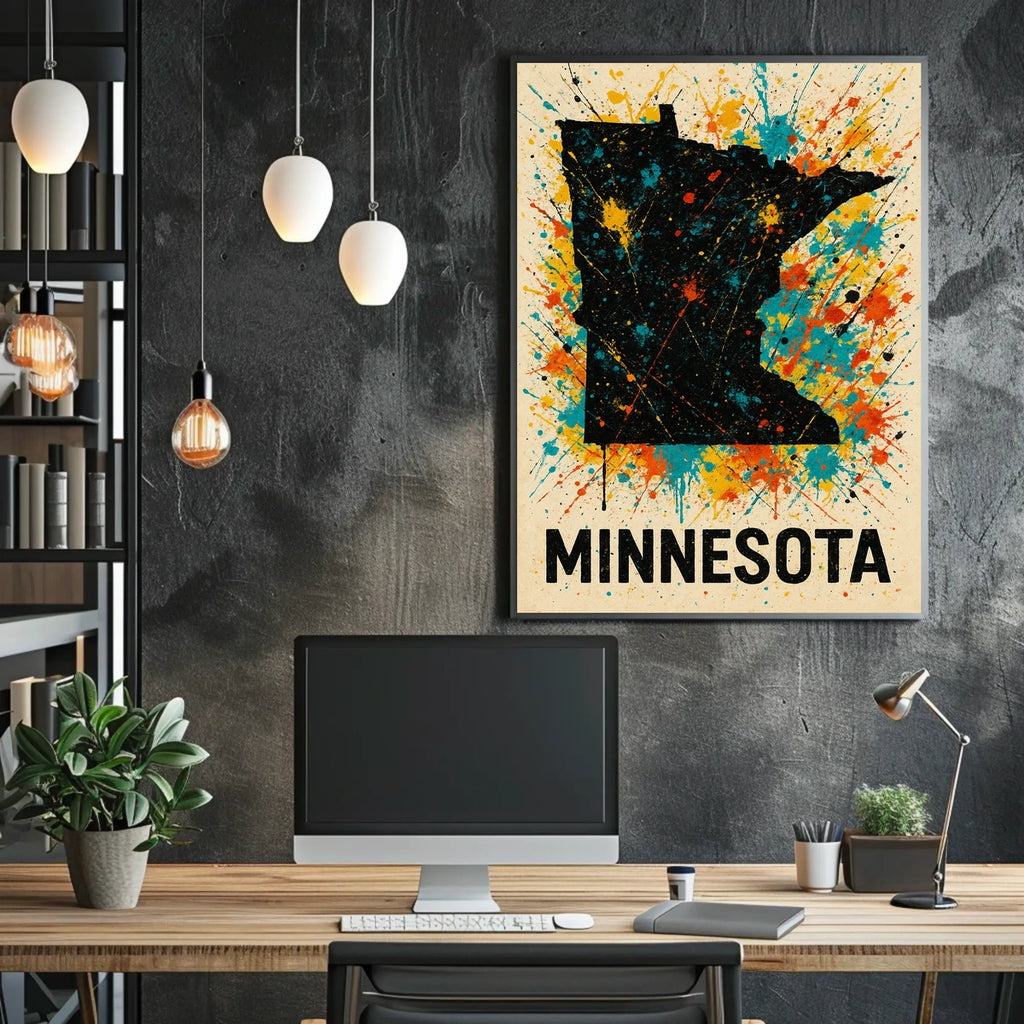 Printed with precision and made to inspire, this artwork is more than decoration—it’s a conversation piece that connects Minnesota’s landscape, culture, and style. Bring Minnesota Splash Poster into your home, classroom, or office today and let your walls tell a powerful story.