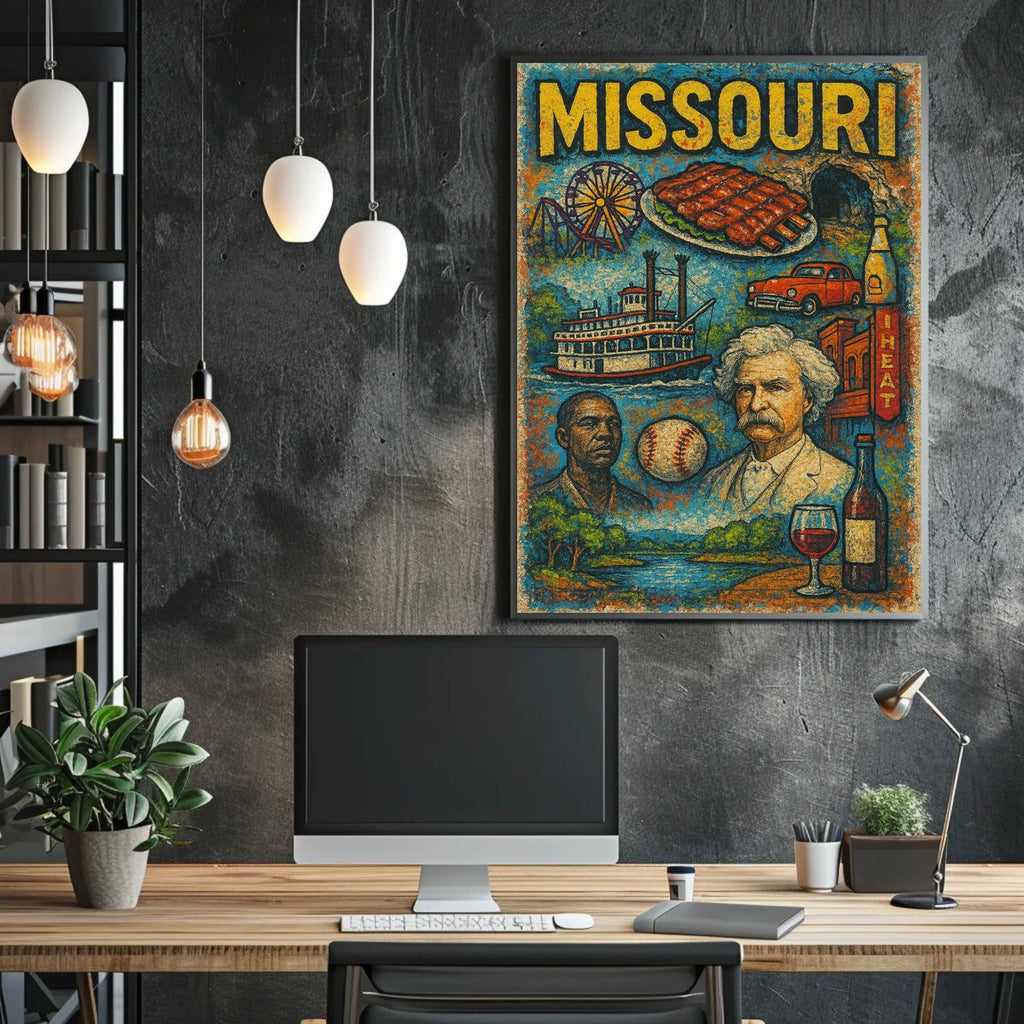 - Printed with precision and made to inspire, this artwork is more than decoration—it’s a conversation piece that connects history, culture, and style. Bring Missouri Highlights into your home, classroom, or office today and let your walls tell a powerful story.