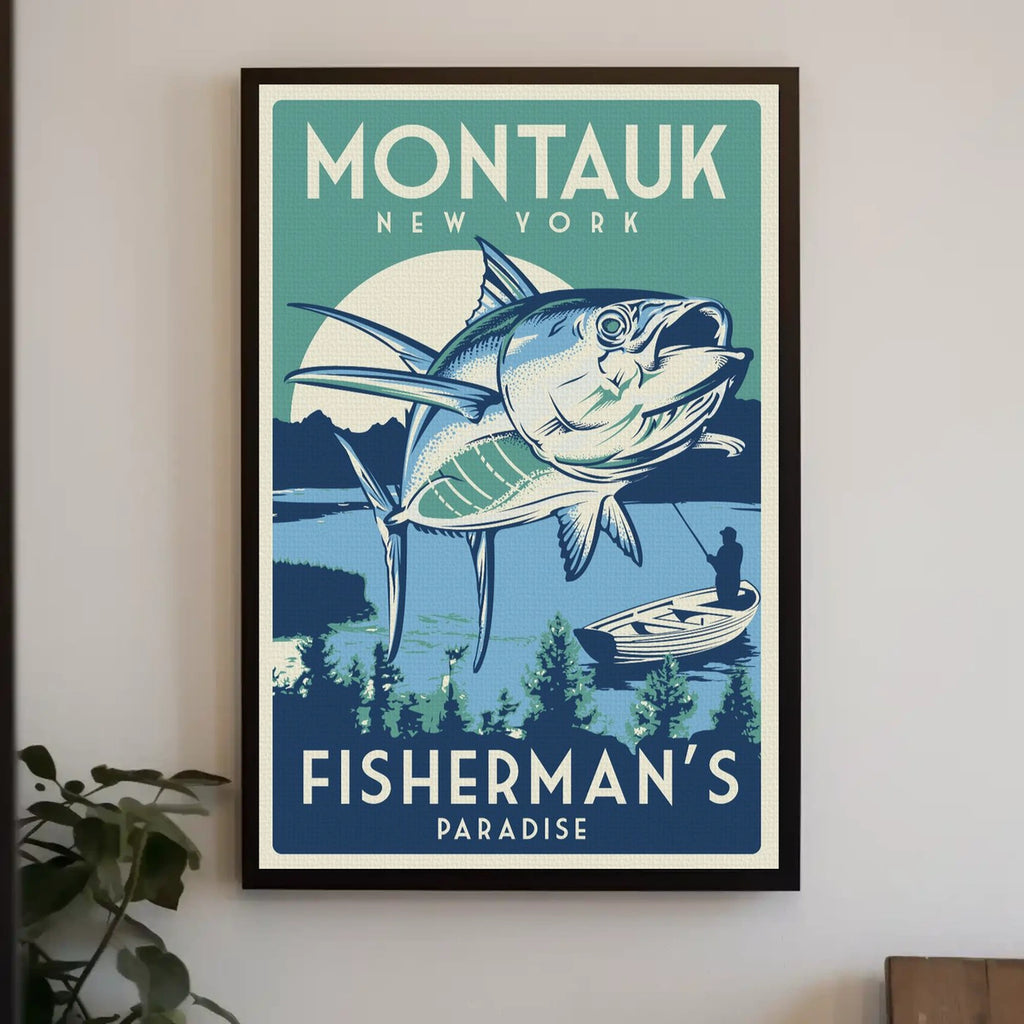 Experience the charm of Montauk, New York, with this exquisitely designed vintage travel poster. Celebrating a classic “Fisherman’s Paradise,” the artwork blends bold coastal imagery with nostalgic style to illuminate any wall and spark conversation.