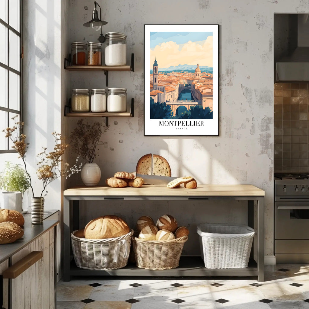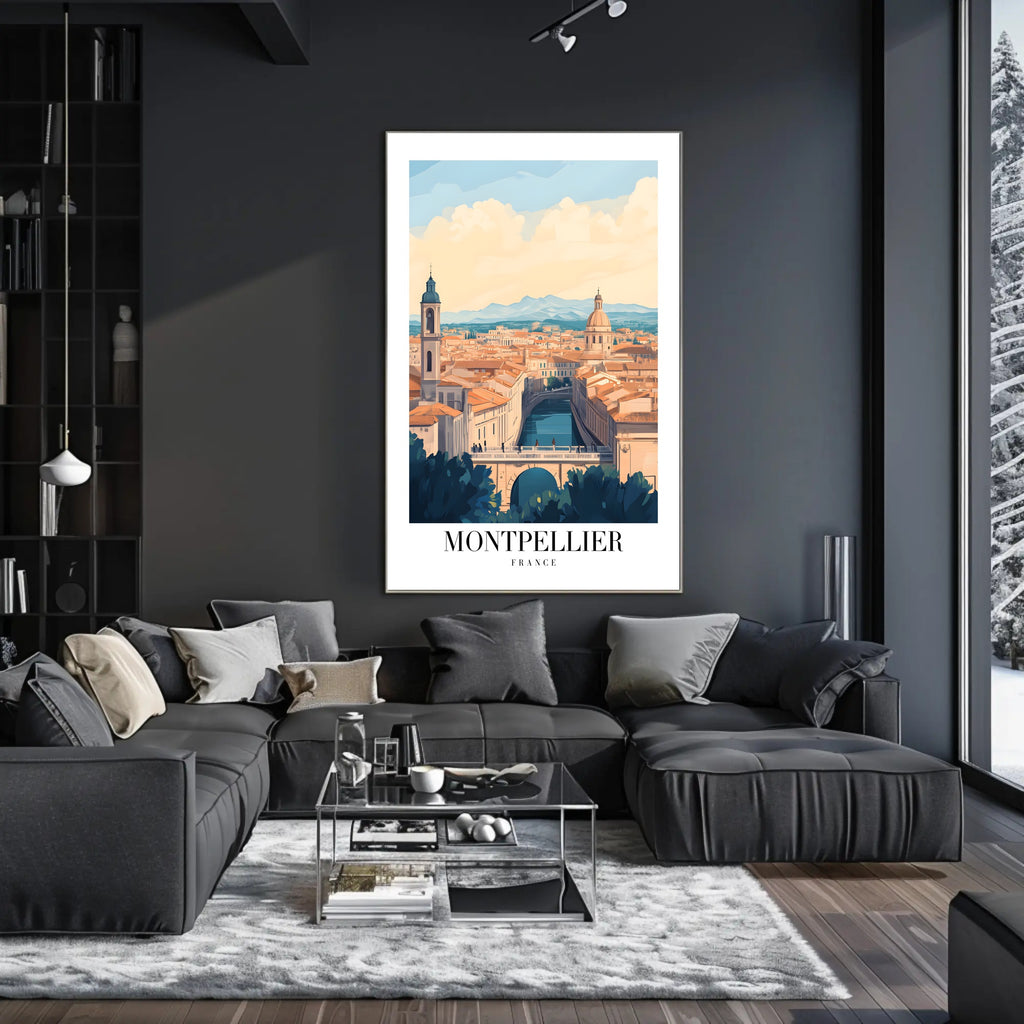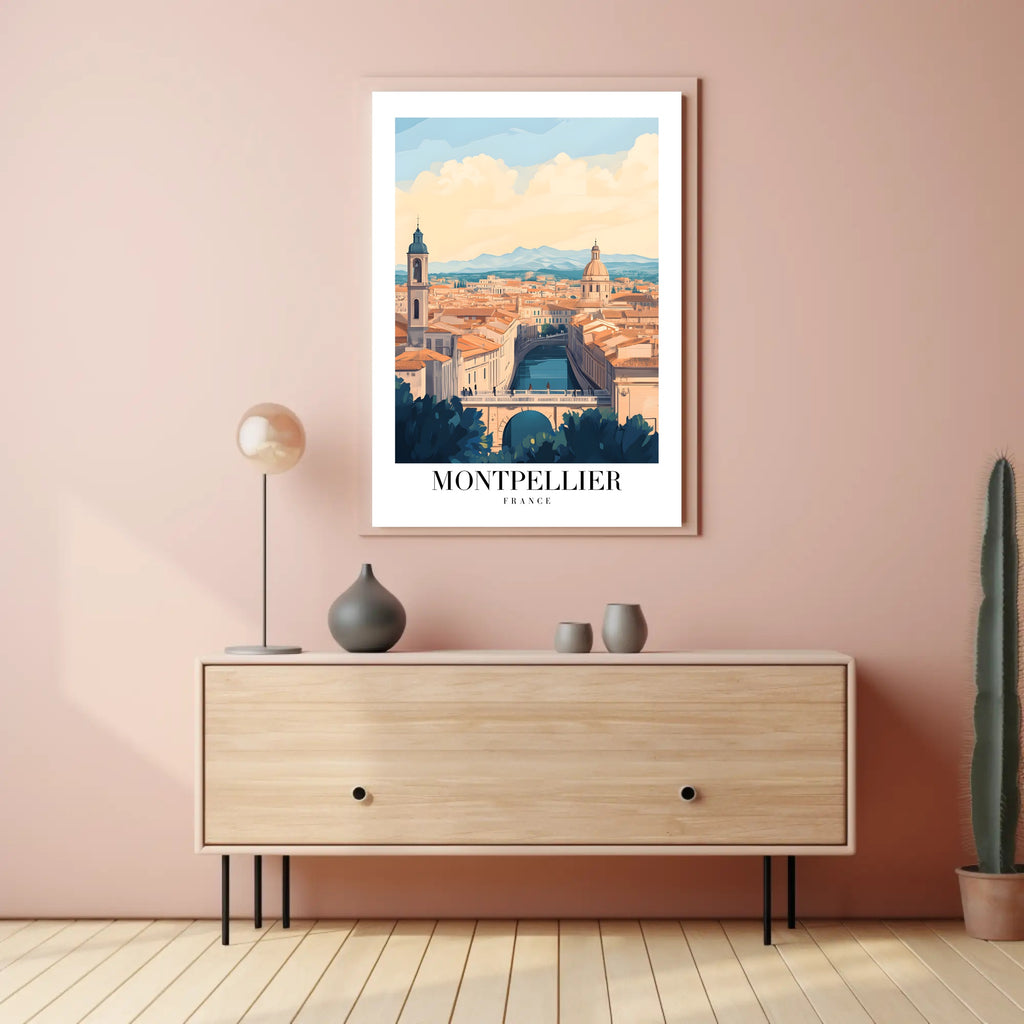 Bring a touch of French elegance to your walls — order the Montpellier Vintage Cityscape Travel Poster by PosterGoat today and transform your space with timeless European cityscape art.