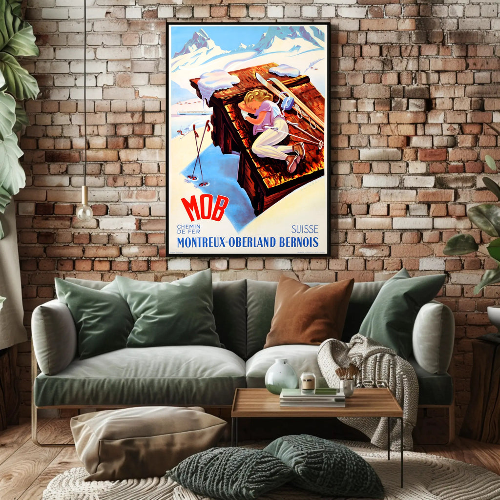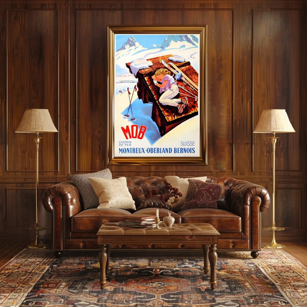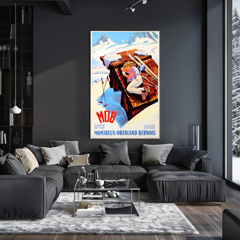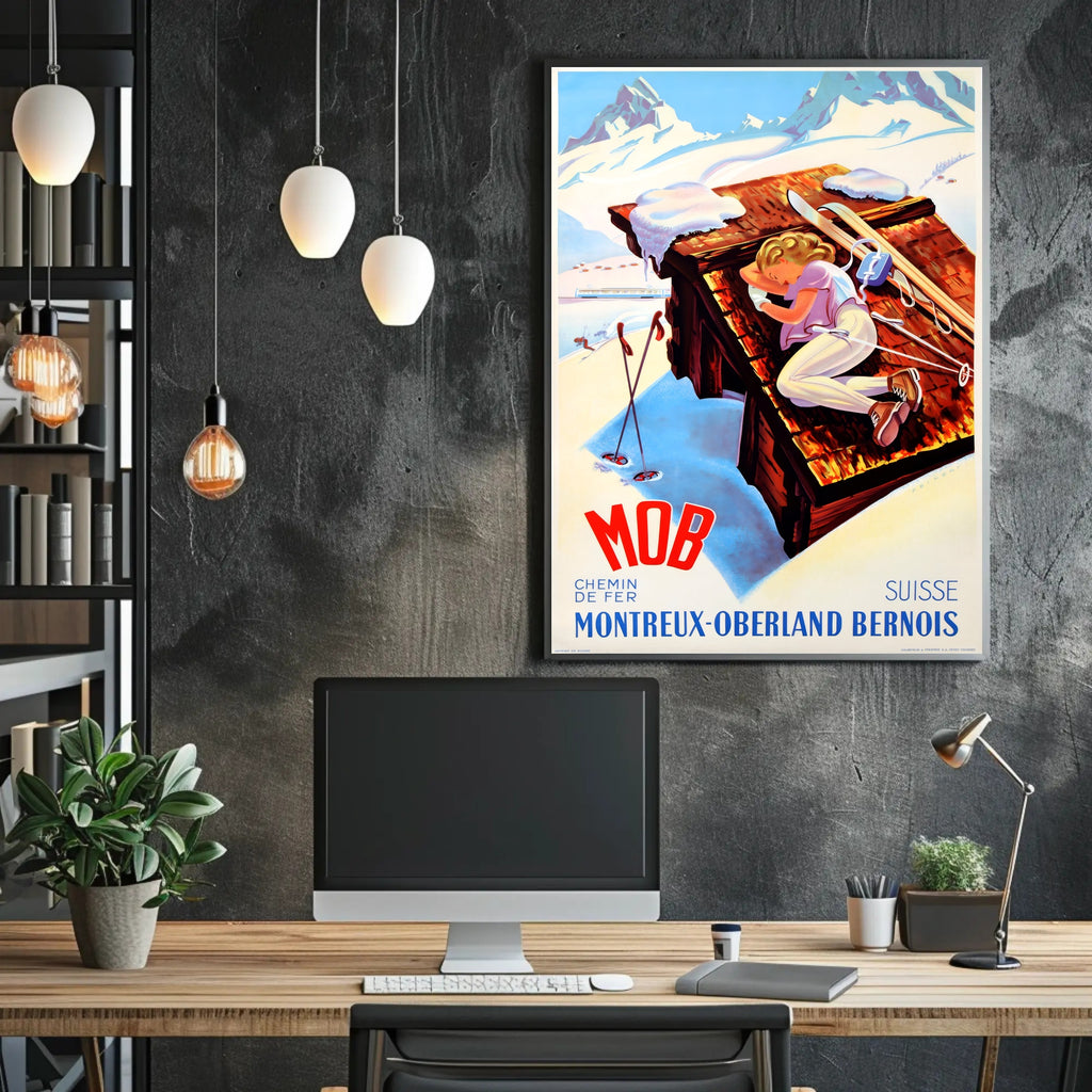 Whether you're a collector of vintage posters or searching for the perfect gift for a travel or ski enthusiast, this Montreux-Oberland Bernois poster adds character and storytelling to any room. Its scenic composition and evocative imagery make it a memorable centerpiece for wall art arrangements.