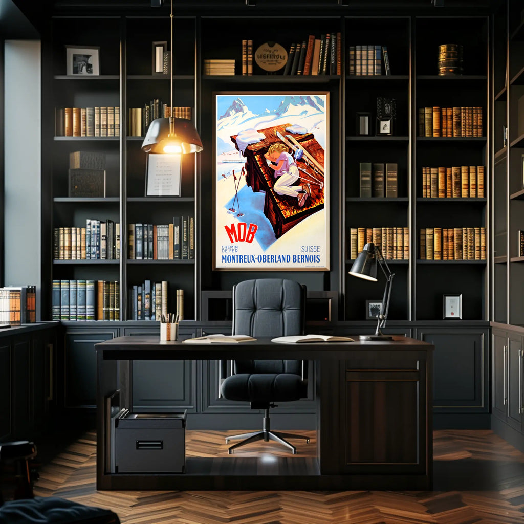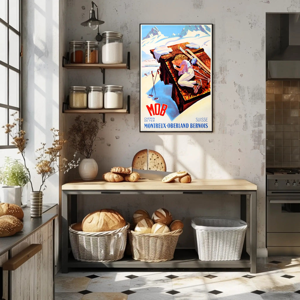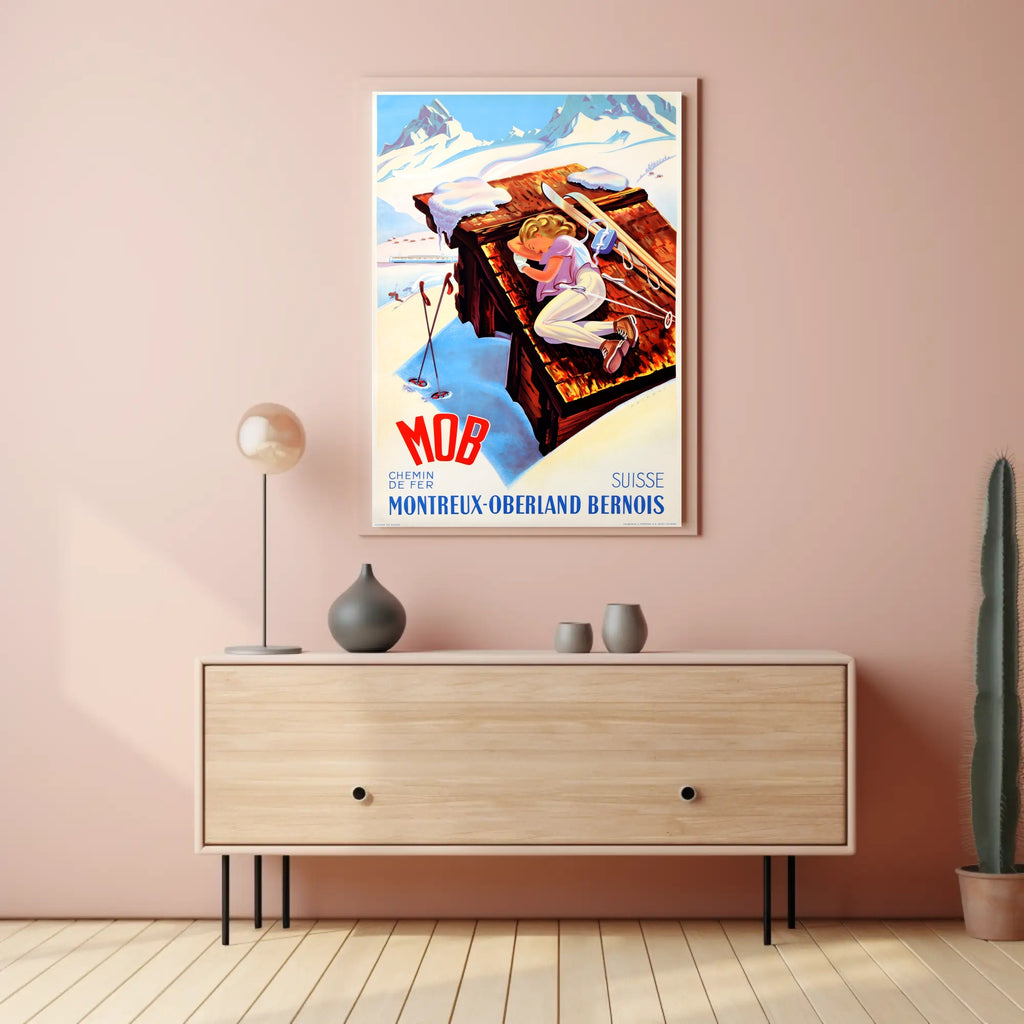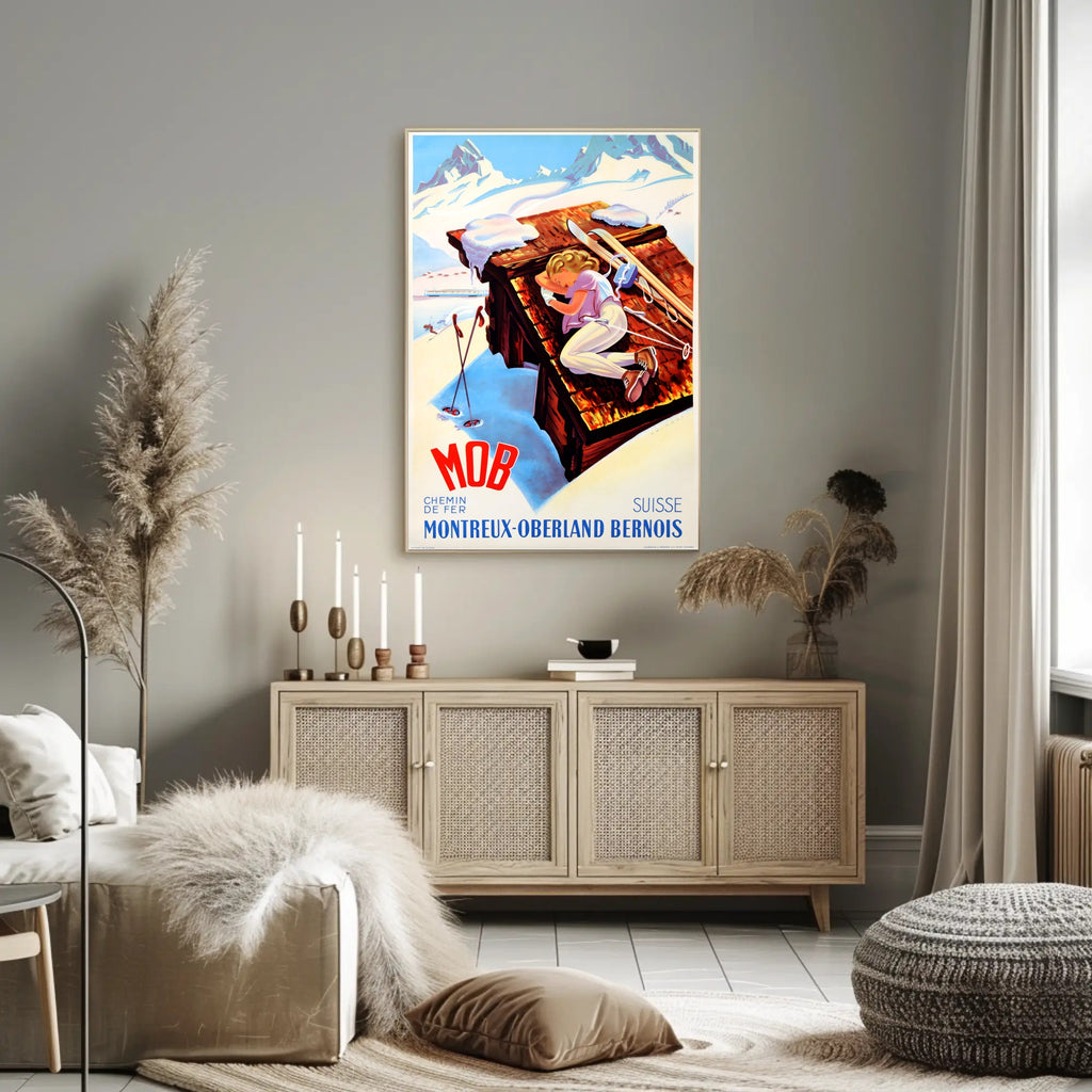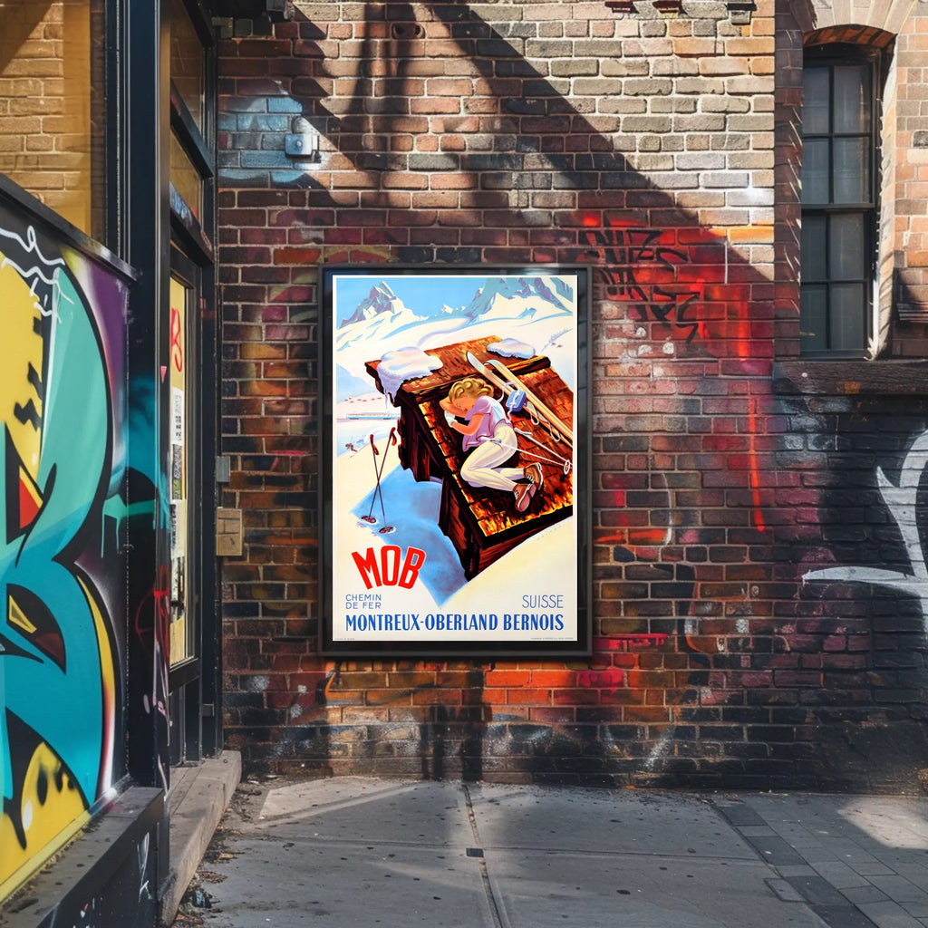 Whether you're a collector of vintage posters or searching for the perfect gift for a travel or ski enthusiast, this Montreux-Oberland Bernois poster adds character and storytelling to any room. Its scenic composition and evocative imagery make it a memorable centerpiece for wall art arrangements.