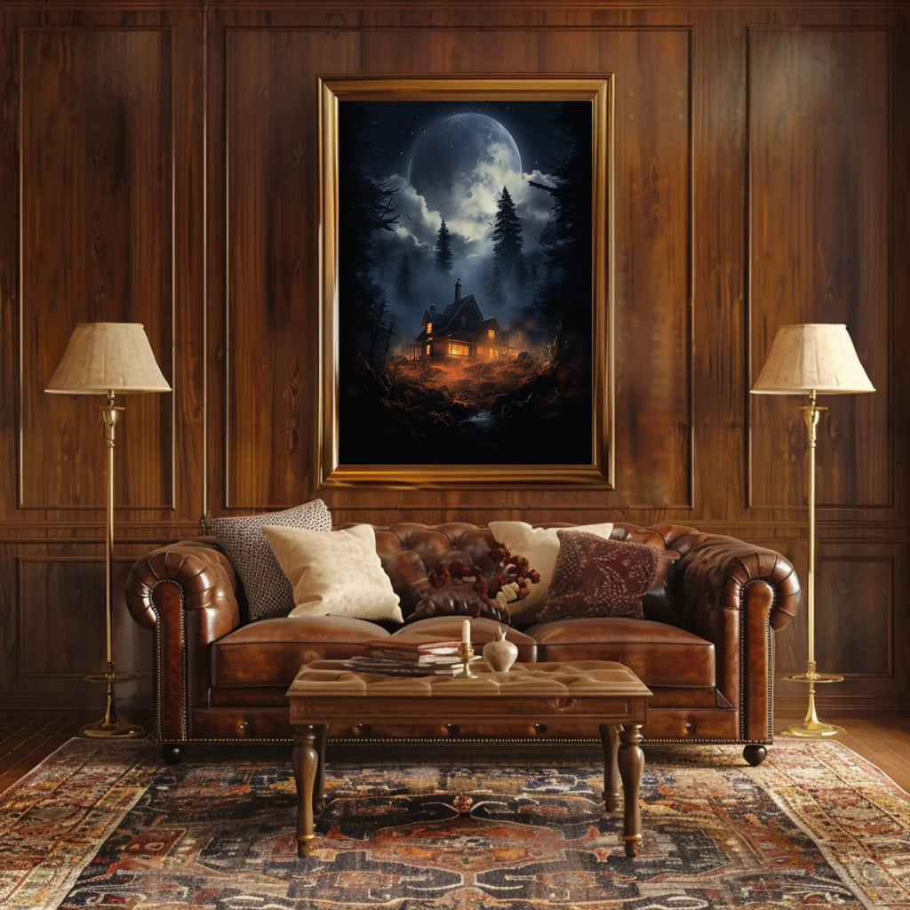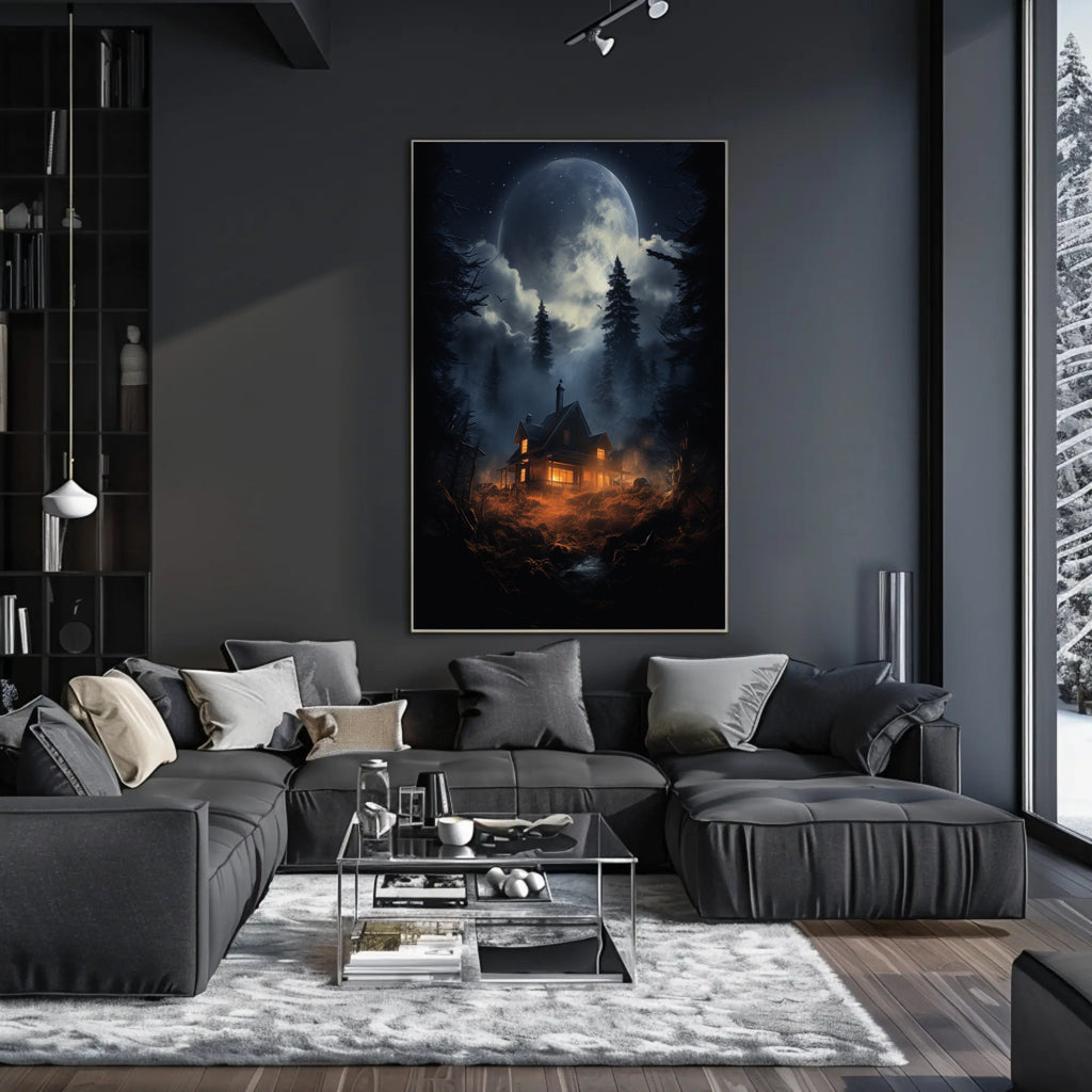 Moonlit Cabin In The Woods Poster - Enchanting Wall Art