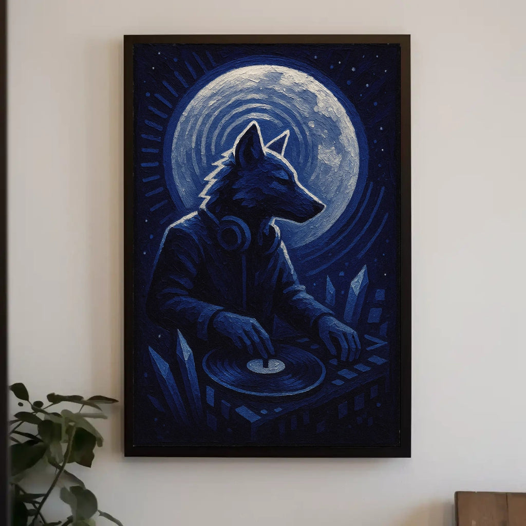 - Printed with precision and made to inspire, this artwork is more than decoration—it’s a conversation piece that connects art, nature, and music. Bring Moonlit DJ Wolf Poster into your home, classroom, or office today and let your walls tell a powerful story.