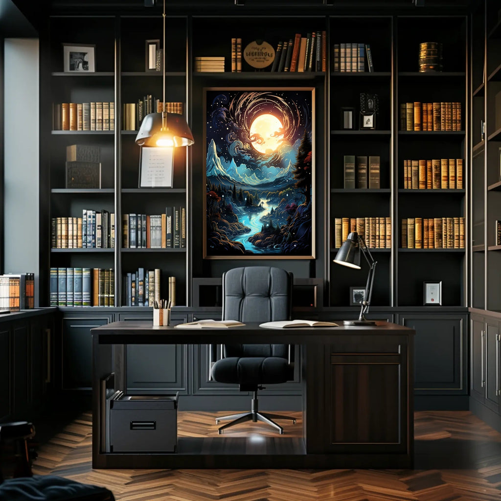 Bring Moonlit Enchantment into your space and let its serene yet magical ambiance transform any wall into a gateway of wonder—perfect for living rooms, bedrooms, studios, or classrooms.