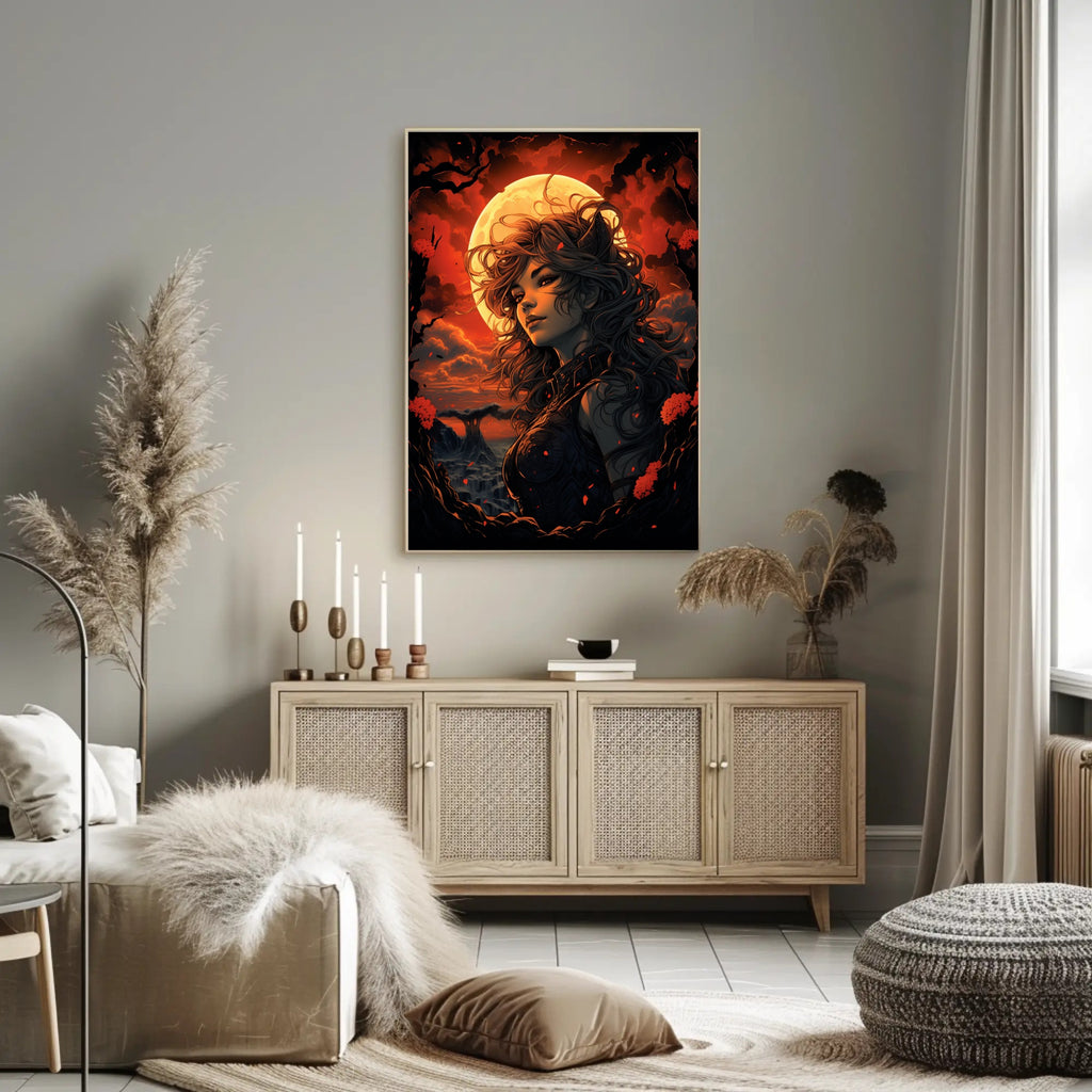 Striking Visuals: The poster showcases an enchanting character against a vivid moonlit backdrop, creating an eye-catching centerpiece for any room.