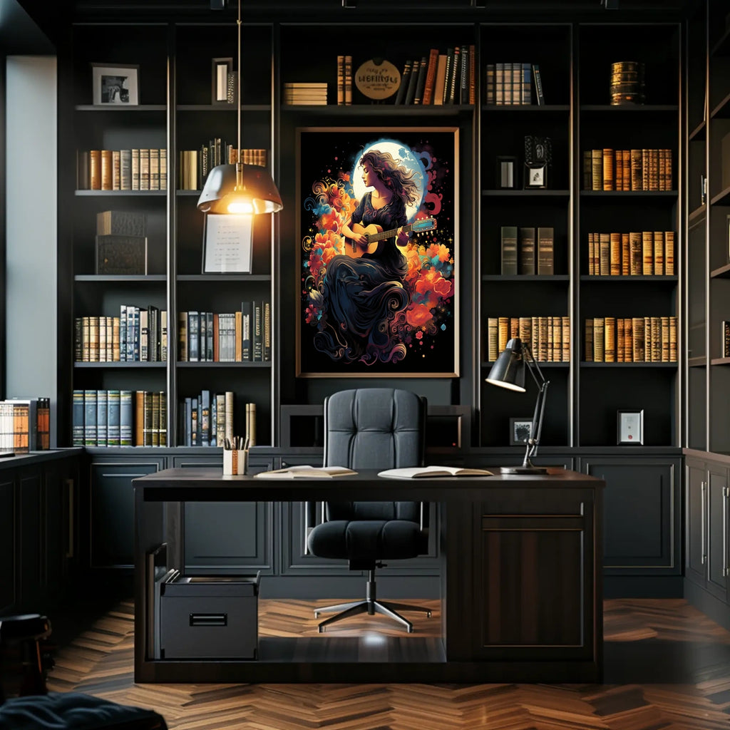 Transform your wall with Moonlit Melody Poster and invite serene, wanderlust-fueled ambiance into your home. Add to cart now to elevate your décor with timeless wall art.
