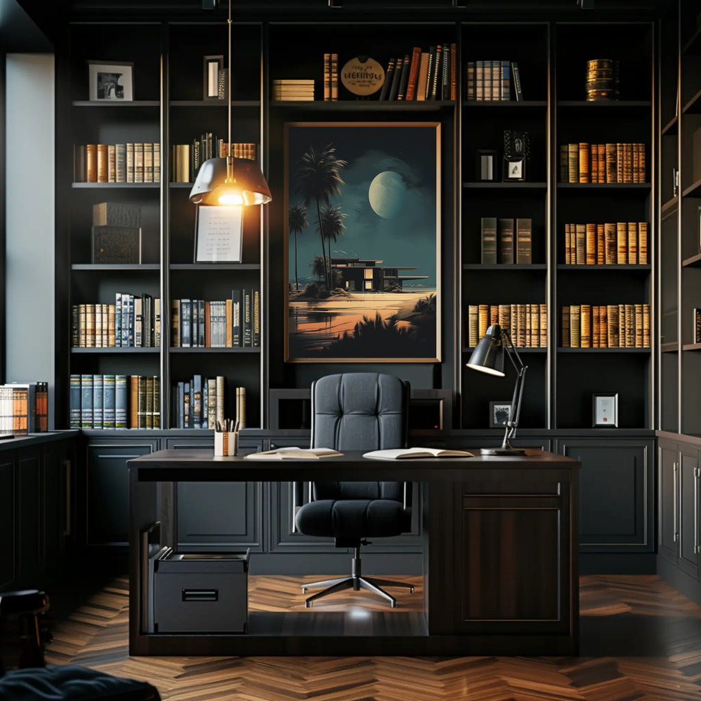 Elevate your decor with a piece that feels like a nightly retreat. Order the Moonlit Modern Oasis Modern Poster from PosterGoat today and transform any room into a modern oasis of calm.