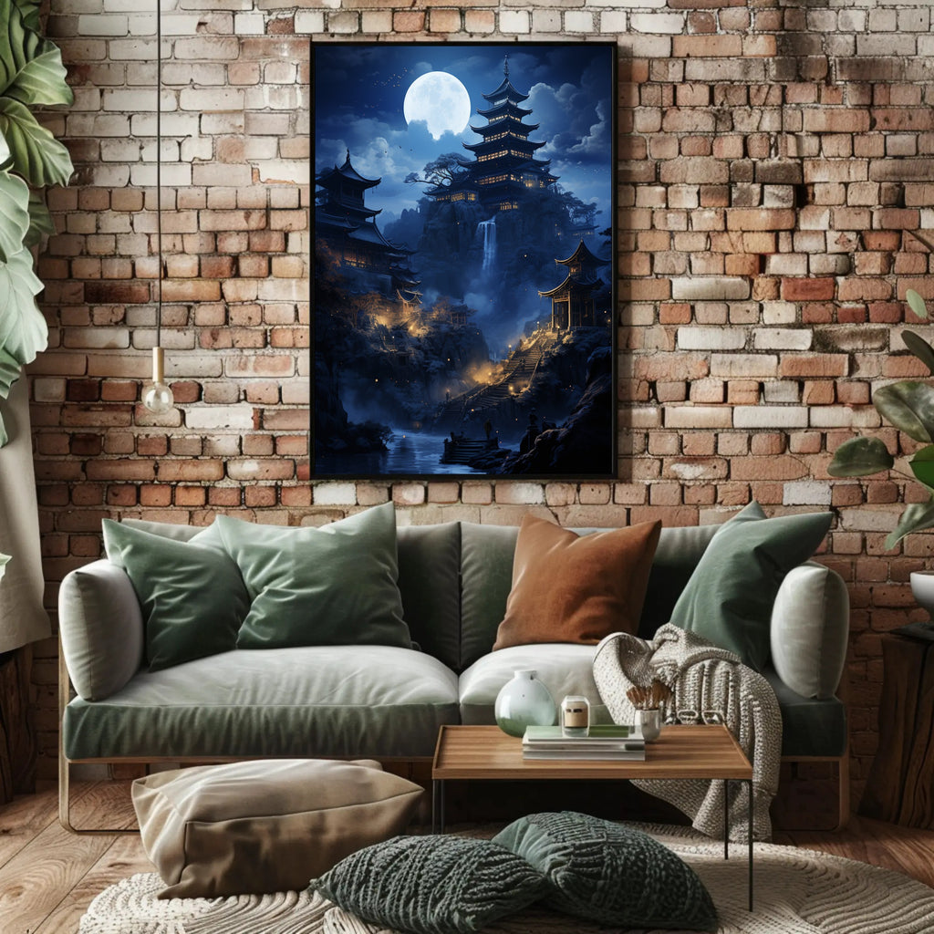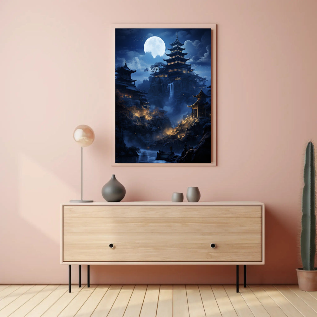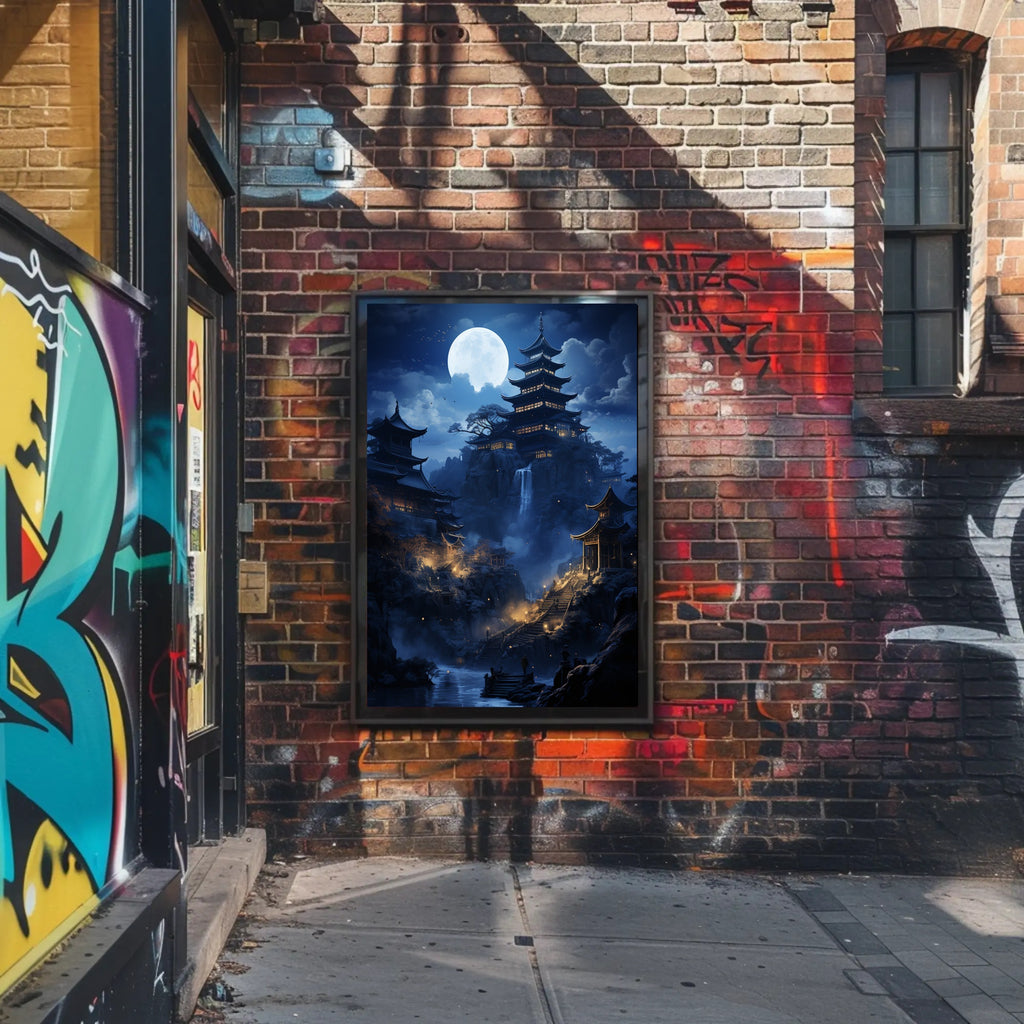 Elevate your home decor with the Moonlit Pagoda Serenity Poster. This captivating piece not only enhances your surroundings but also inspires tranquility. Don't miss out on the chance to own this beautiful artworkβorder yours today!