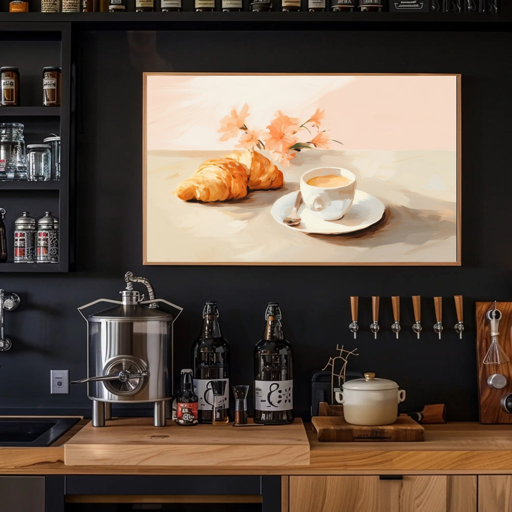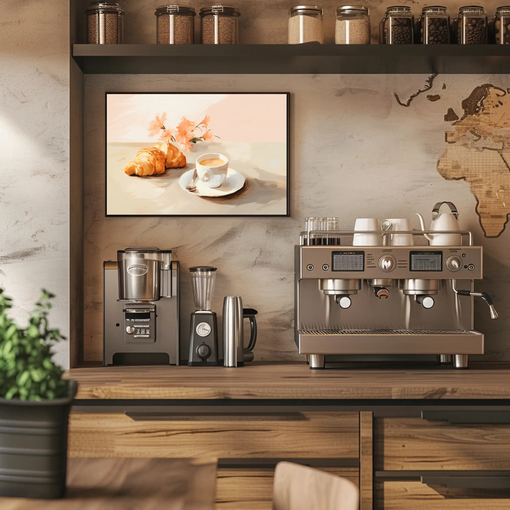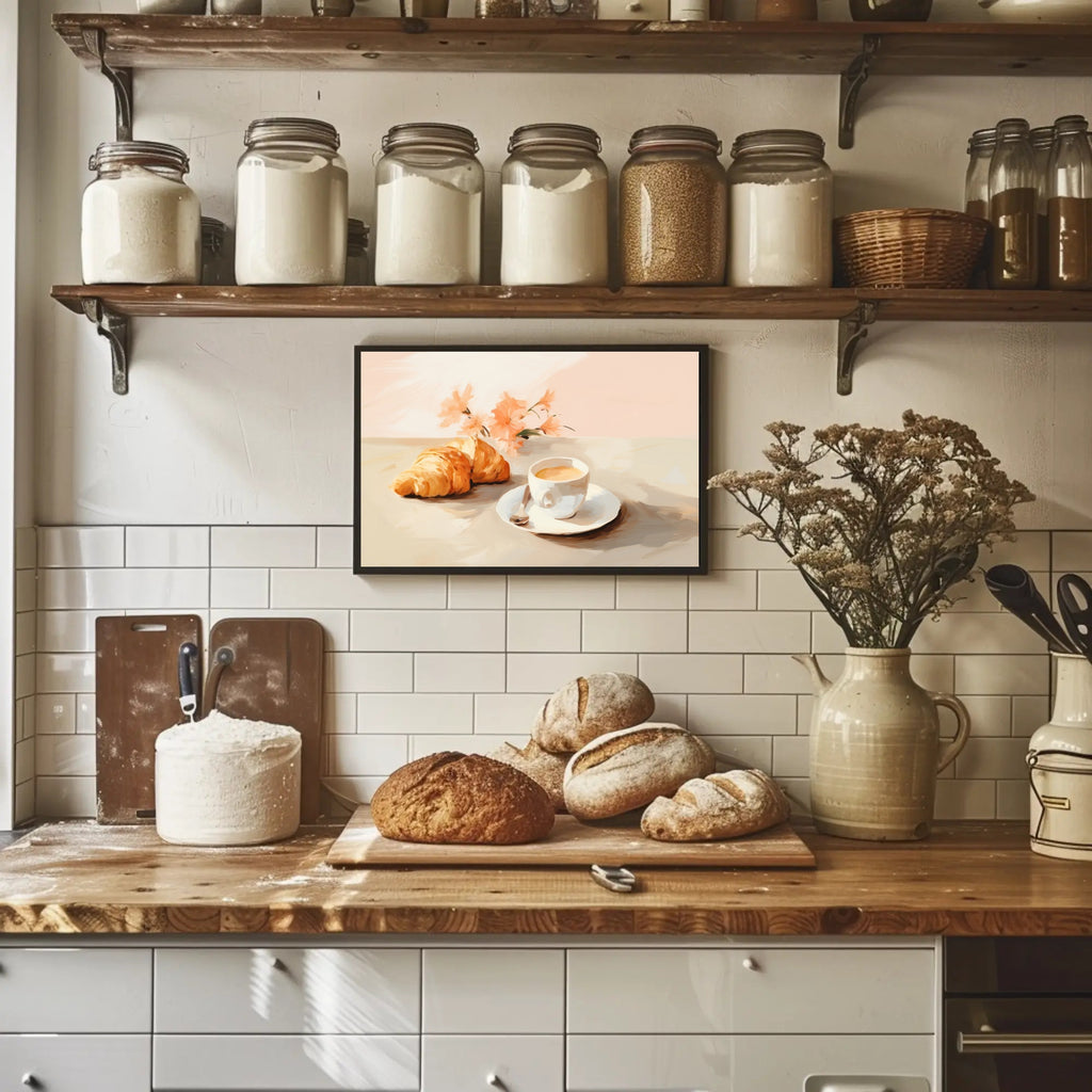 - Style: Minimalist; Theme: Art & Aesthetic; Subtheme: coffee scene, serene mornings, kitchen wall art