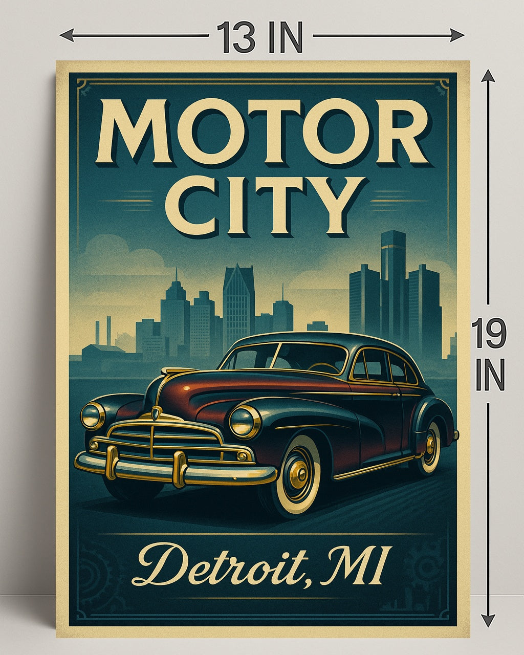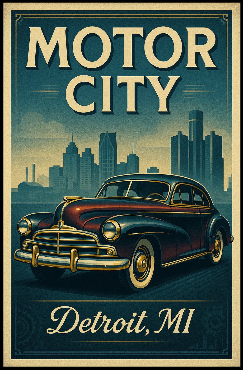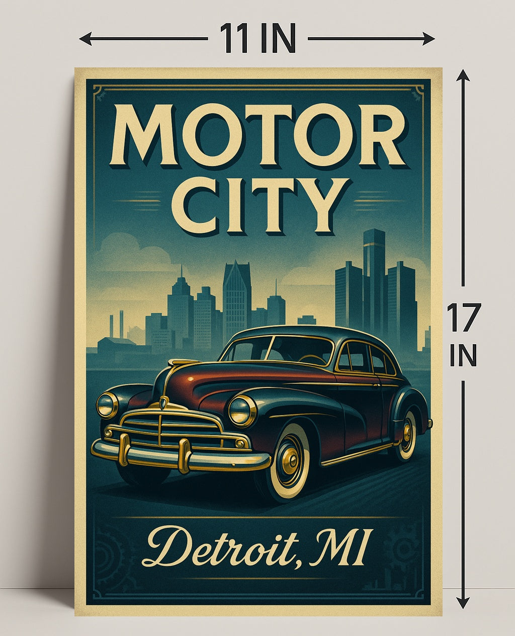 Bring Motor City history into your space — add the Motor City Detroit Vintage Poster Art Print from PosterGoat to your cart today and transform your wall with classic charm.