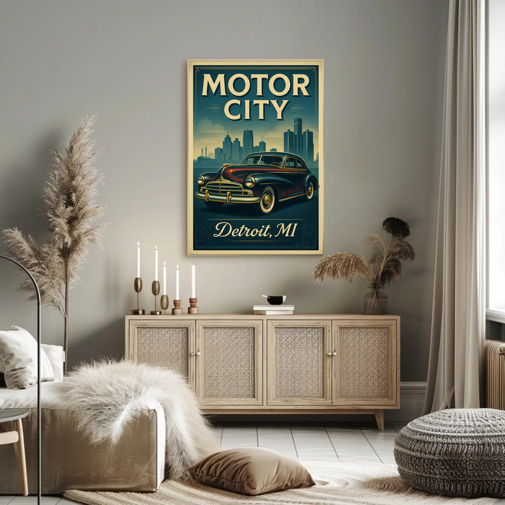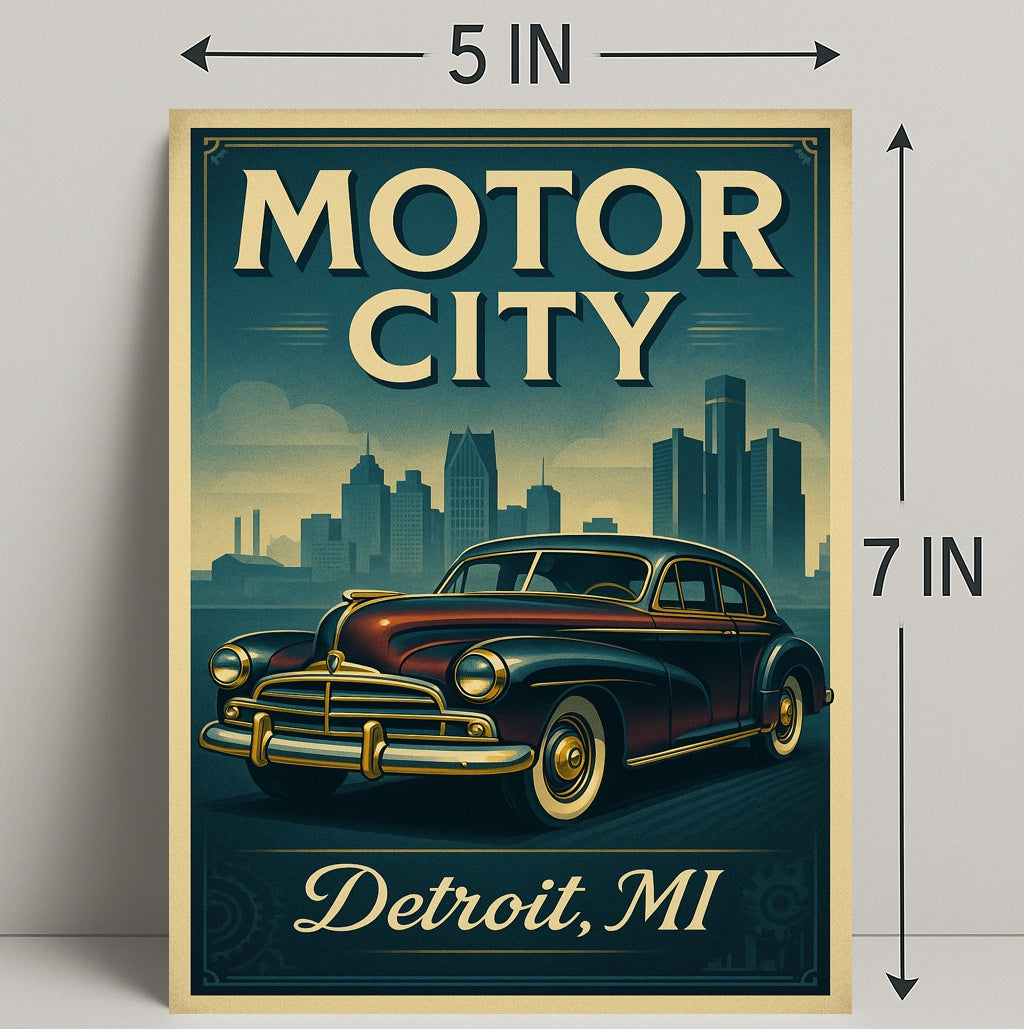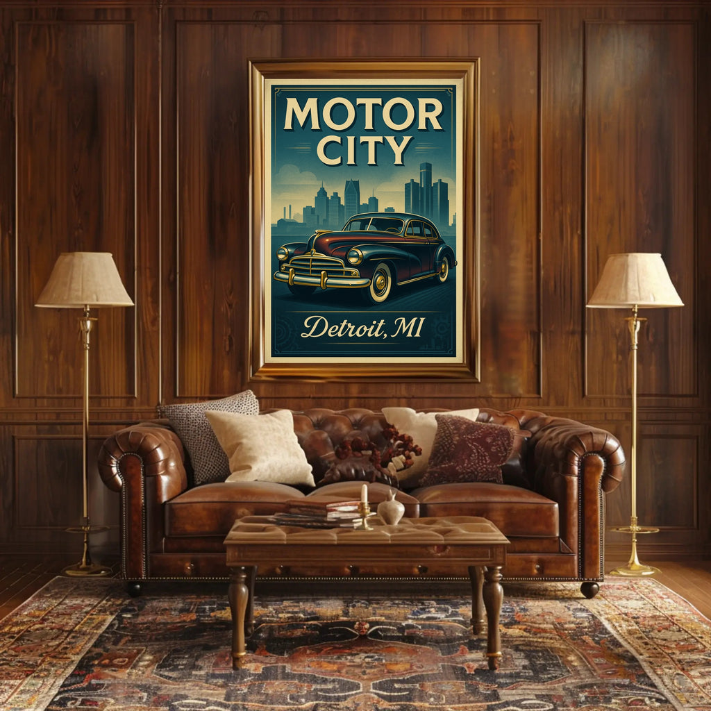 Bring Motor City history into your space — add the Motor City Detroit Vintage Poster Art Print from PosterGoat to your cart today and transform your wall with classic charm.