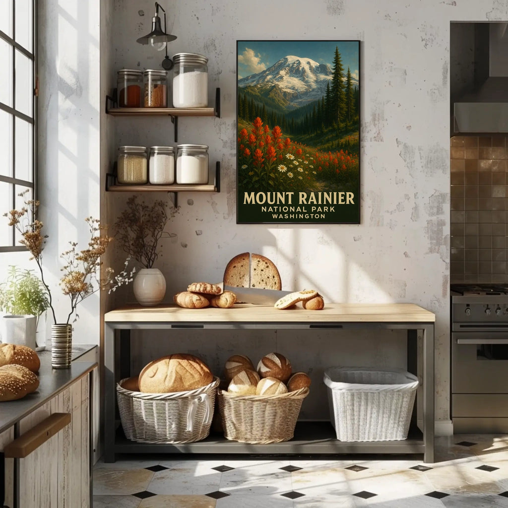 Mount Rainier National Park Poster captures the essence of Mount Rainier National Park. Designed for decor lovers and wanderlust spirits, this art print adds charm to any room with visuals inspired by real-world scenery.