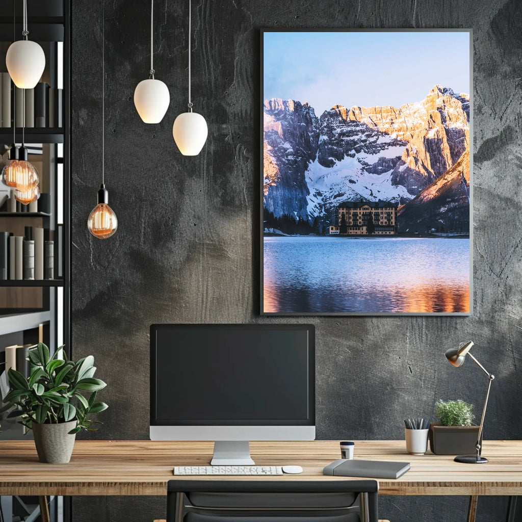 Printed with precision and made to inspire, this artwork is more than decoration—it’s a conversation piece that connects nature, travel, and style. Bring Mountain Retreat At Sunrise Poster into your home, classroom, or office today and let your walls tell a powerful story.