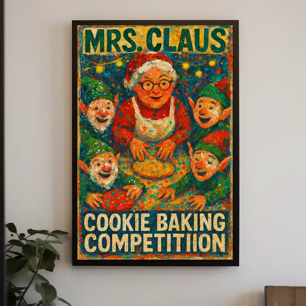 Bring Mrs. Claus Cookie Baking Competition Poster into your home, classroom, or office today and let your walls tell a powerful story. This art print adds charm to any room with visuals inspired by real-world scenery.
