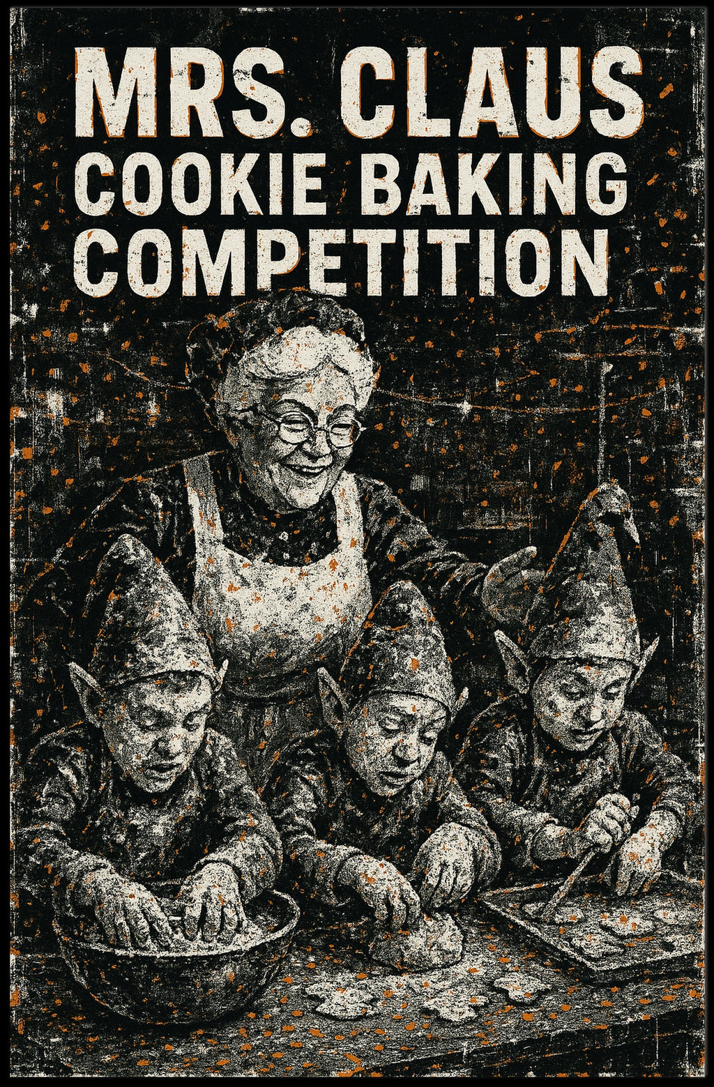 Celebrate the beauty of Mrs. Claus Cookie Baking Competition Poster with this timeless wall art poster. This poster captures the essence of the Mrs. Claus Cookie Baking Competition. Designed for decor lovers and wanderlust spirits, this art print adds charm to any room with visuals inspired by real-world scenery.