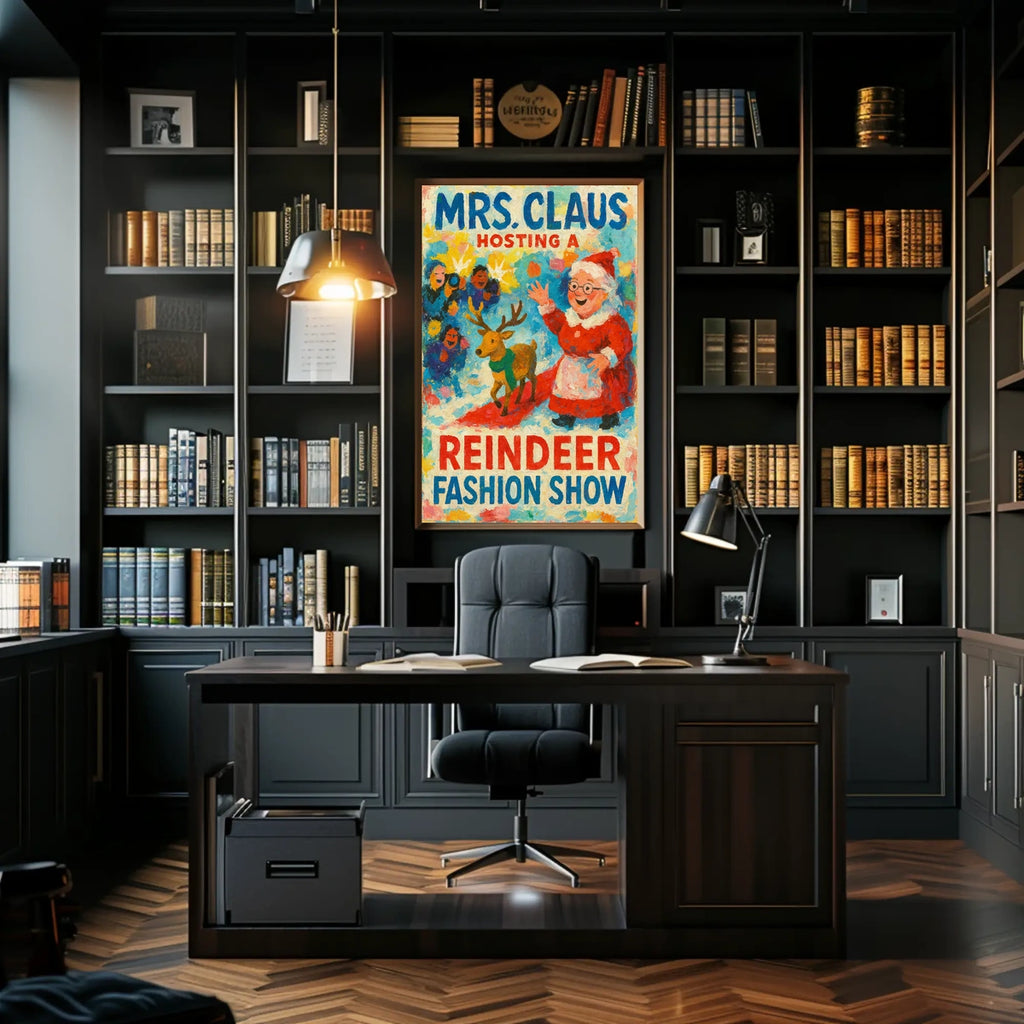 Mrs. Claus Hosts A Reindeer Fashion Show Poster — Celebrate the beauty of this timeless wall art. Designed to capture its unique appeal, this piece is perfect for decor lovers and wanderlust spirits, or anyone who wants to bring meaning and inspiration into their space.