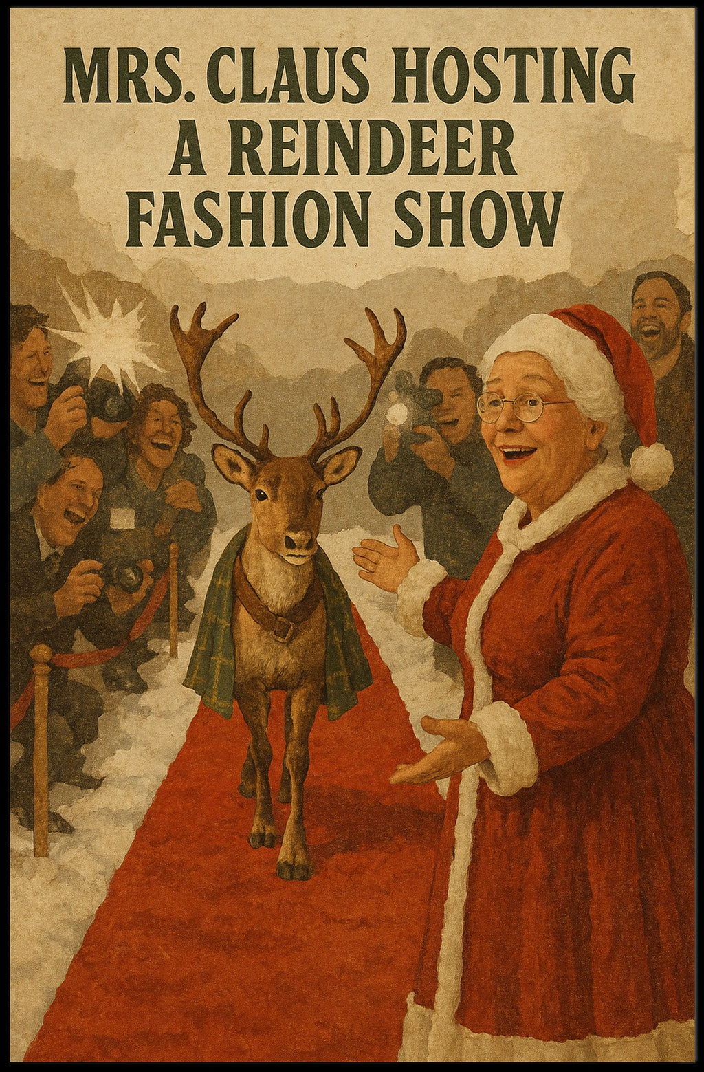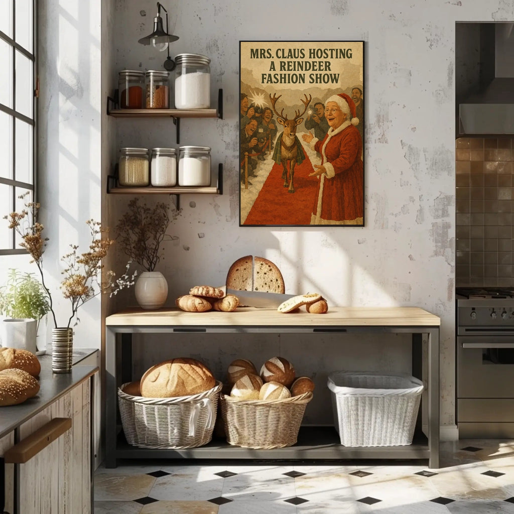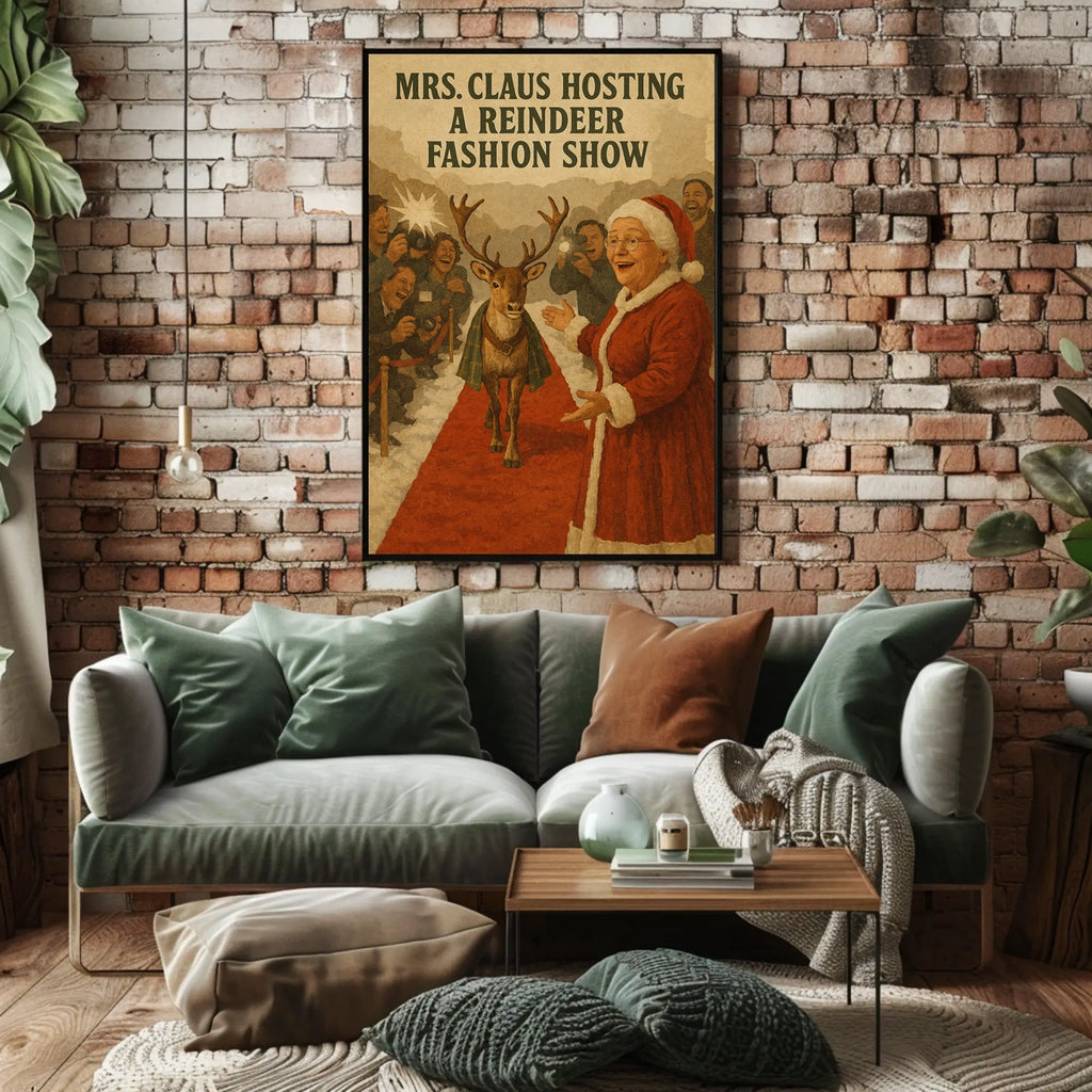 Printed with precision and made to inspire, this artwork is more than decoration—it’s a conversation piece that connects holiday whimsy, storytelling, and style. Bring Mrs. Claus Hosts a Reindeer Fashion Show Poster into your home, classroom, or office today and let your walls tell a magical story.