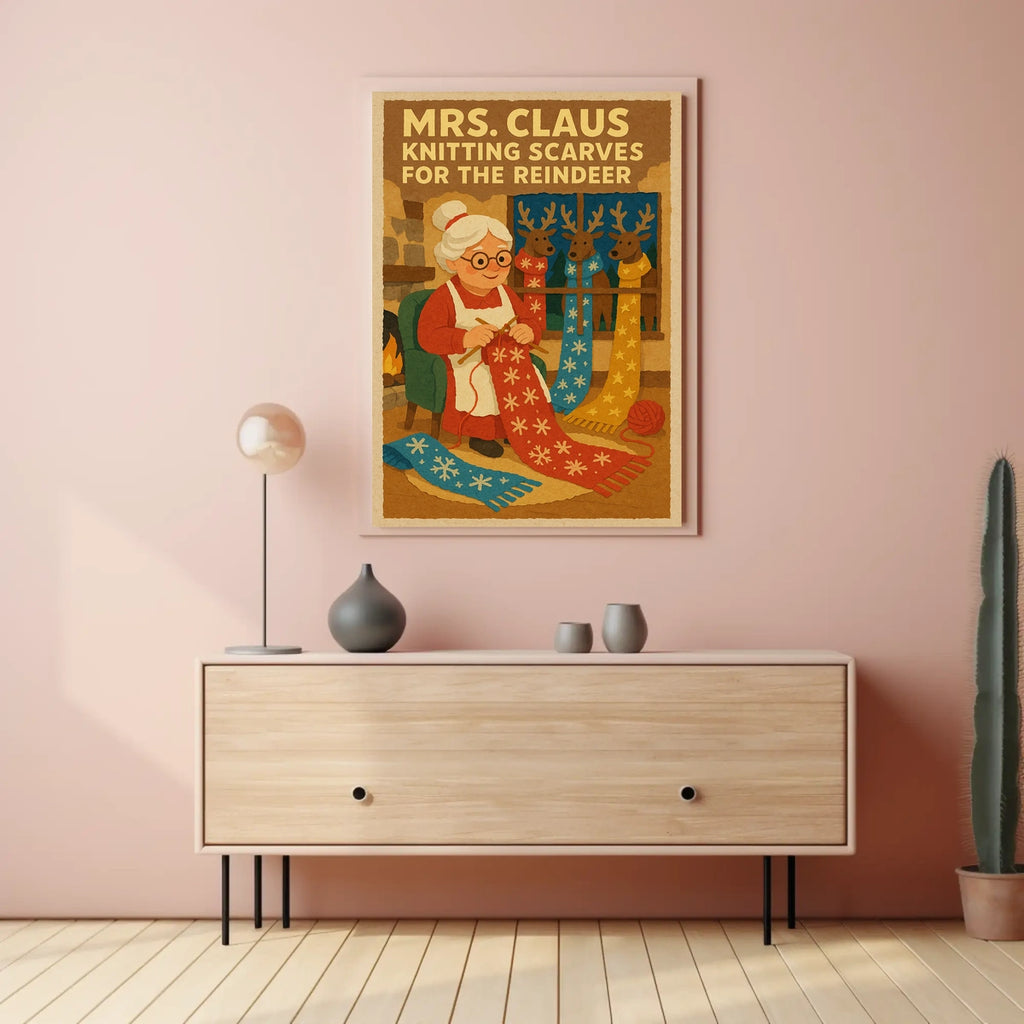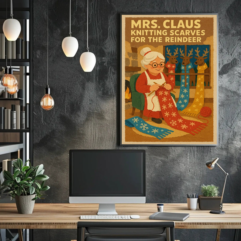 Printed with precision and made to inspire, this artwork is more than decoration—it’s a conversation piece that connects tradition, storytelling, and seasonal charm. Bring Mrs. Claus Knitting For The Reindeer Poster into your home, classroom, or office today and let your walls tell a powerful story.