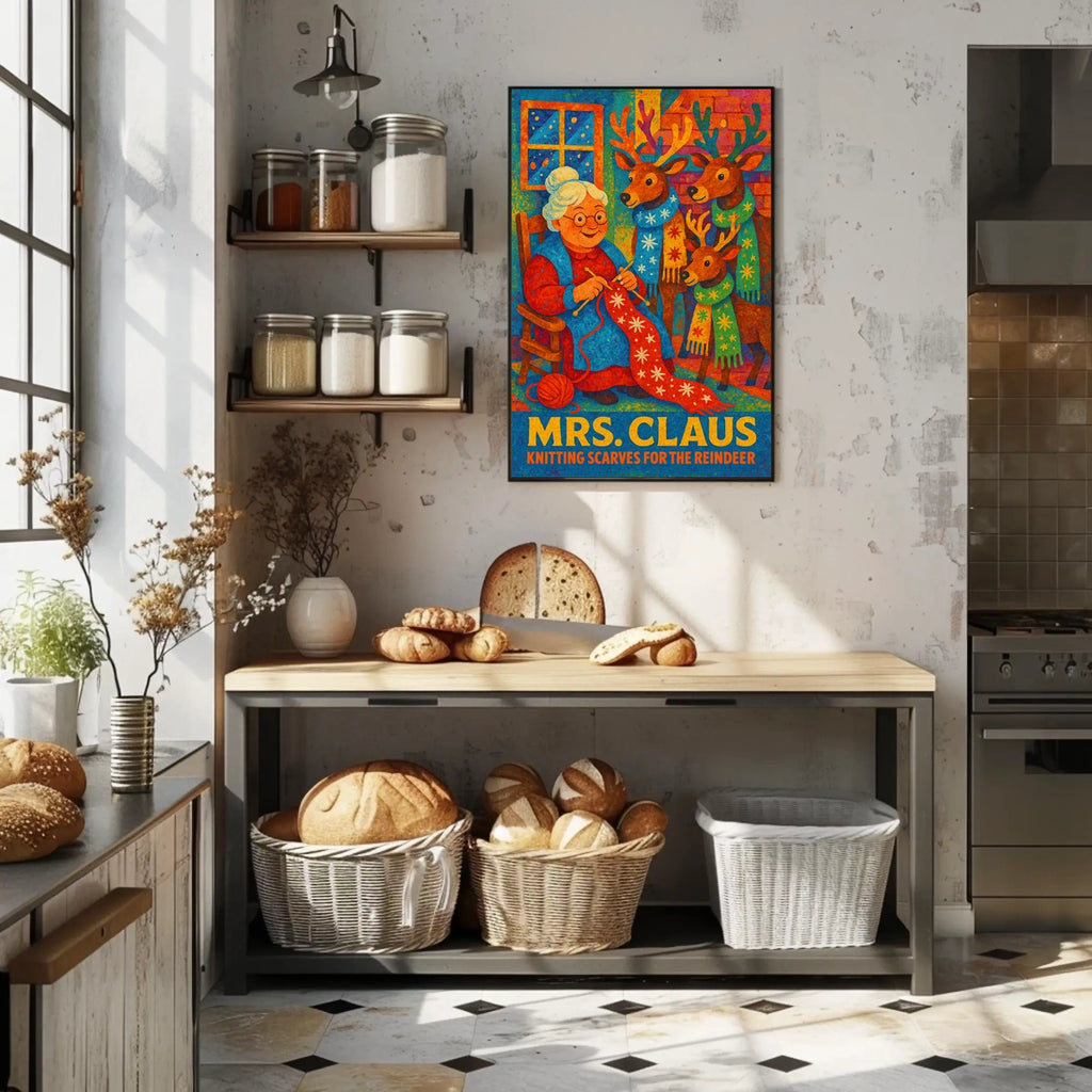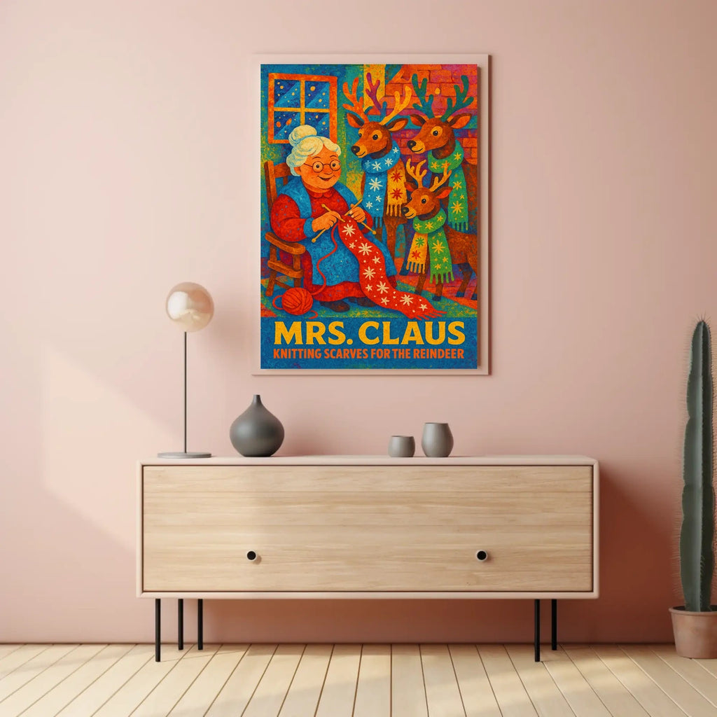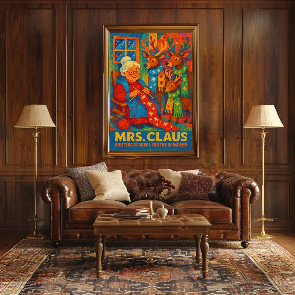 Printed with precision and made to inspire, this artwork is more than decoration—it’s a conversation piece that connects holiday charm, storytelling, and style. Bring Mrs. Claus Knitting For The Reindeer Poster into your home, classroom, or office today and let your walls tell a powerful story.