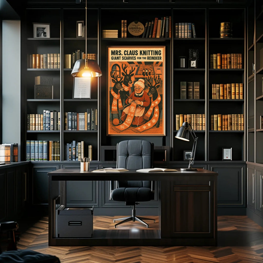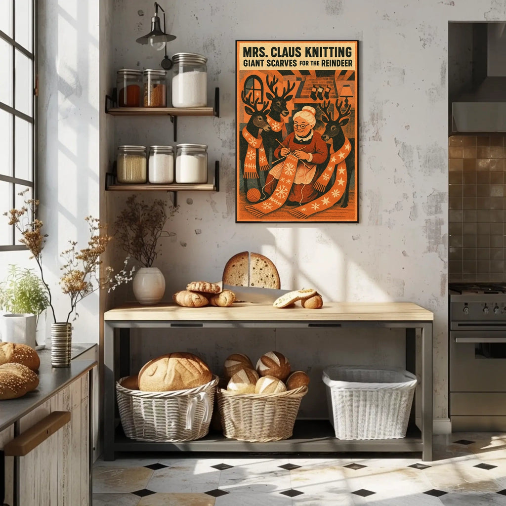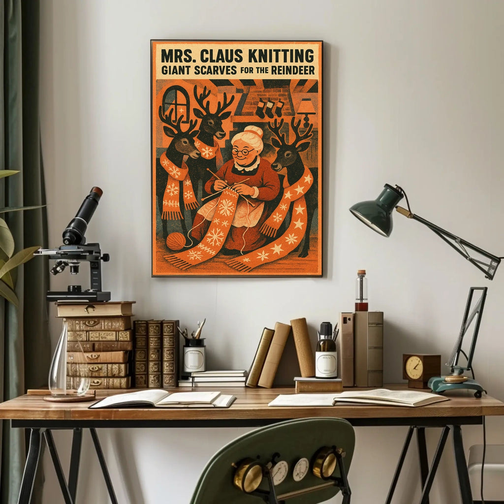 - Printed with precision and made to inspire, this artwork is more than decoration—it’s a conversation piece that connects whimsy, craft, and culture. Bring Mrs. Claus Knitting Giant Scarves Poster into your home, classroom, or office today and let your walls tell a powerful story.
