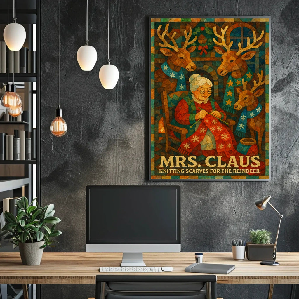 - Printed with precision and made to inspire, this artwork is more than decoration—it’s a conversation piece that connects holiday tradition and style. Bring Mrs. Claus Knitting Scarves Poster into your home, classroom, or office today and let your walls tell a powerful story.