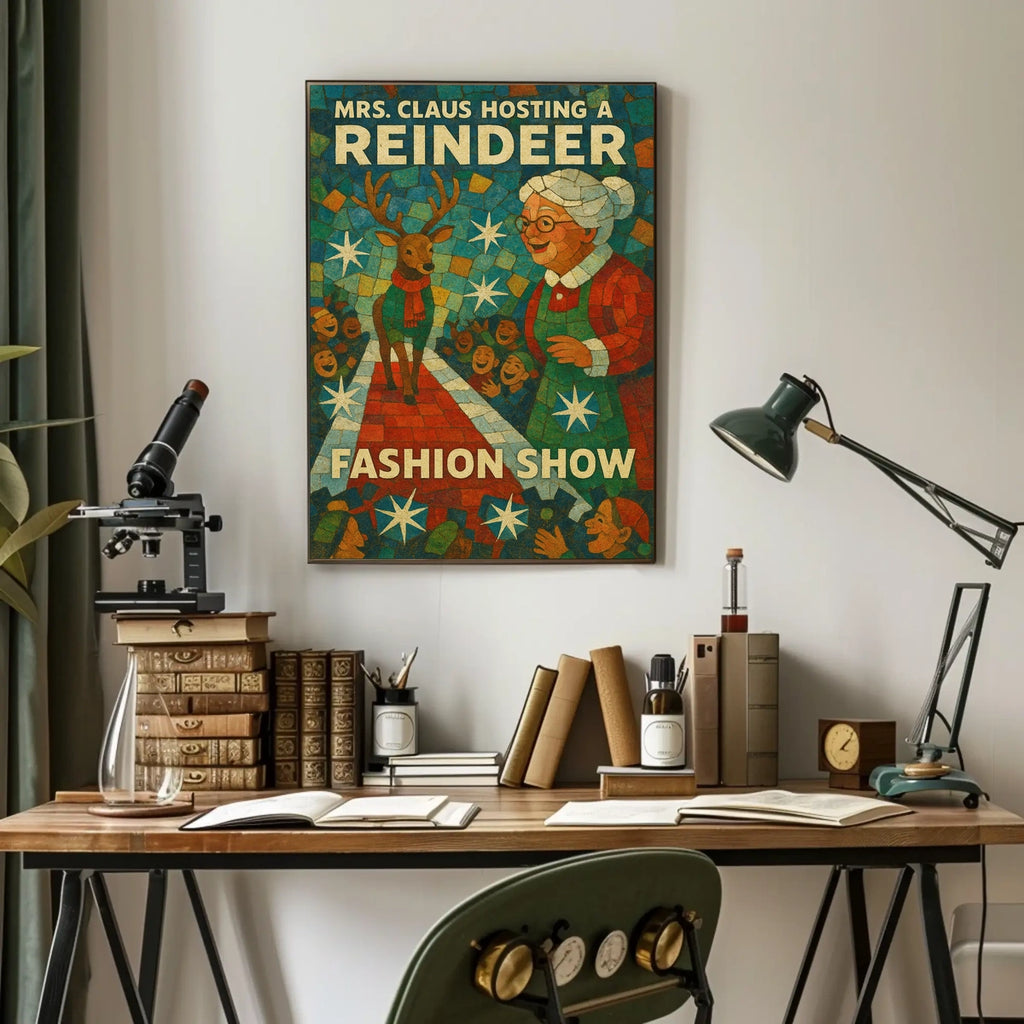 - Printed with precision and made to inspire, this artwork is more than decoration—it’s a conversation piece that connects holiday nostalgia, fashion, and whimsy. Bring Mrs. Claus Reindeer Fashion Show into your home, classroom, or office today and let your walls tell a powerful story.