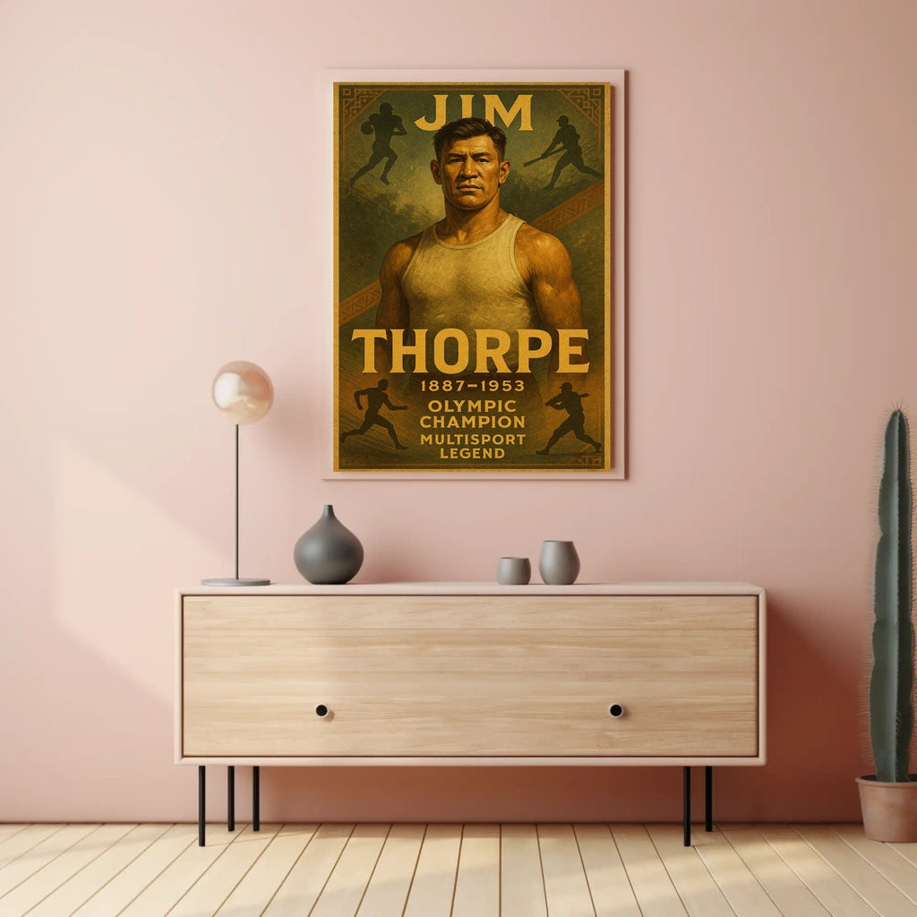 Celebrate the remarkable legacy of a legendary multisport athlete with this striking poster. Spanning a lifetime of achievement from 1887 to 1953, it captures an Olympic champion whose athletic prowess and commanding presence defined an era.