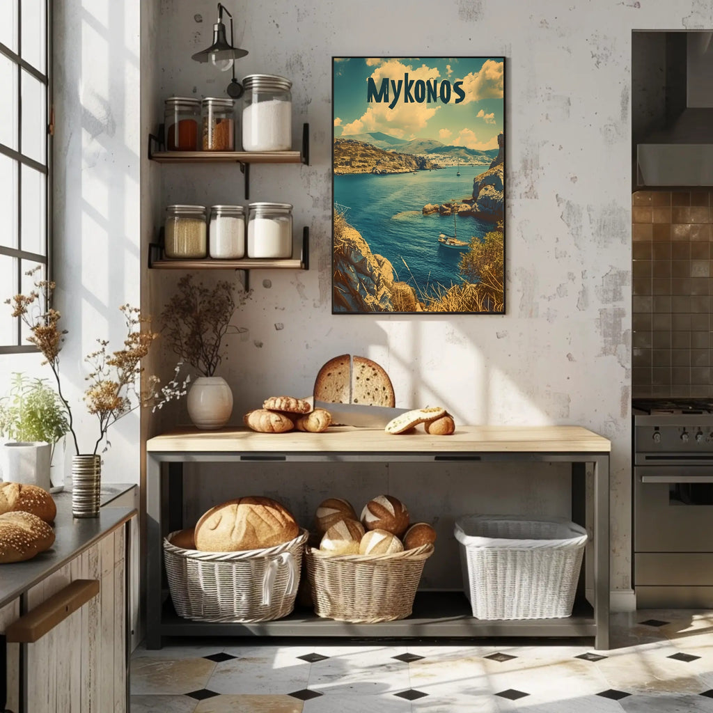 This Mykonos print makes a memorable gift for travel lovers, collectors of nautical art, or anyone seeking a tranquil Mediterranean accent for their home. Add PosterGoat’s Mykonos Coastal Vista to your cart today and bring a slice of Greek island serenity to your walls.