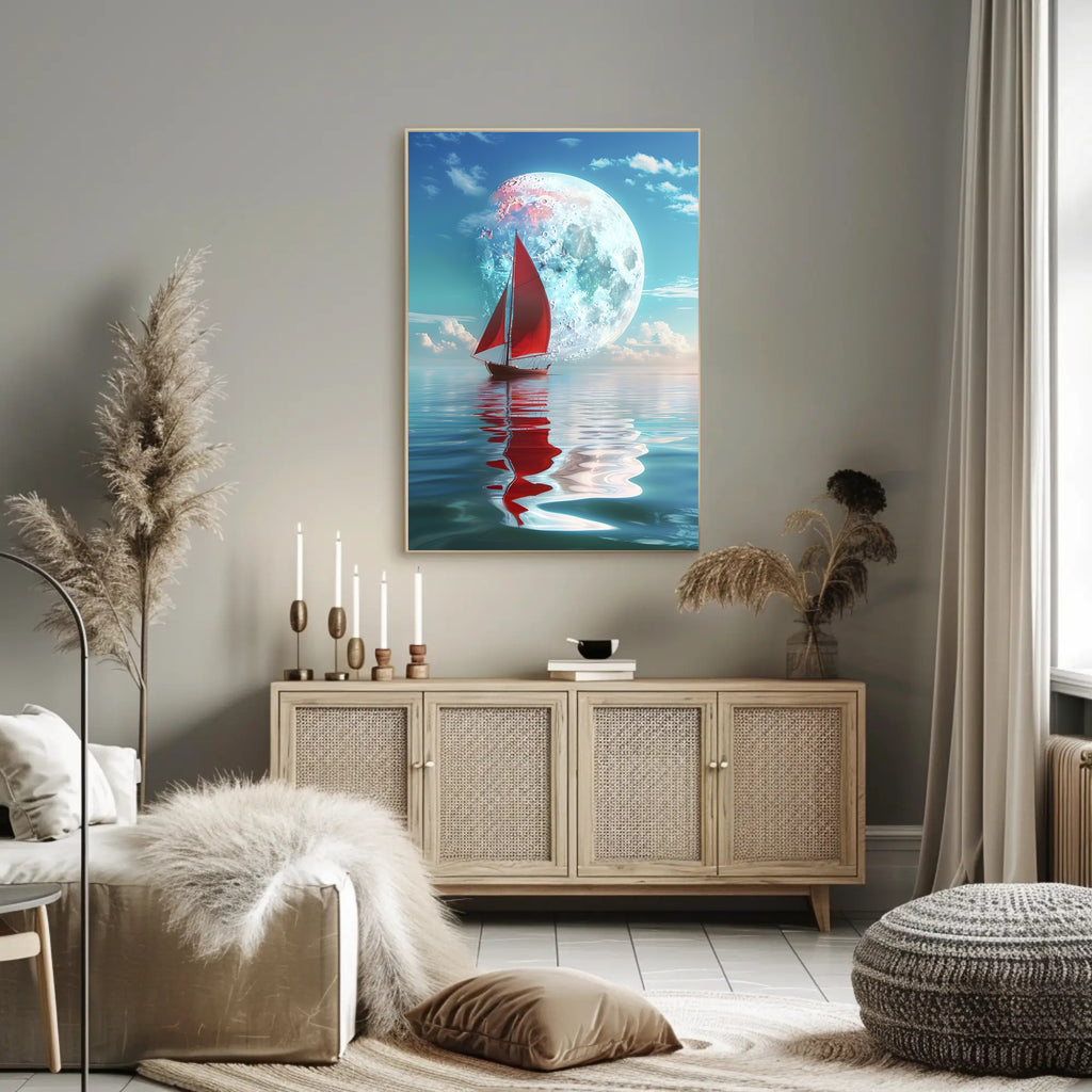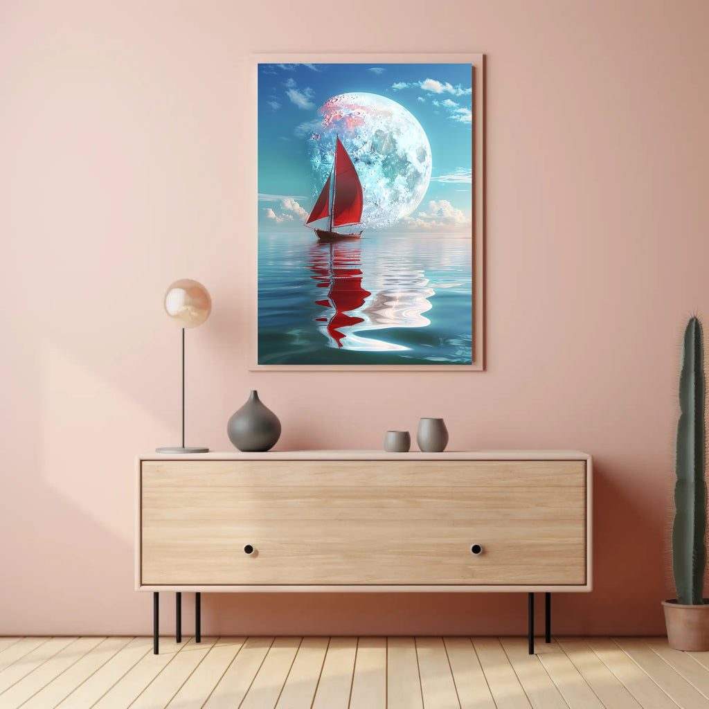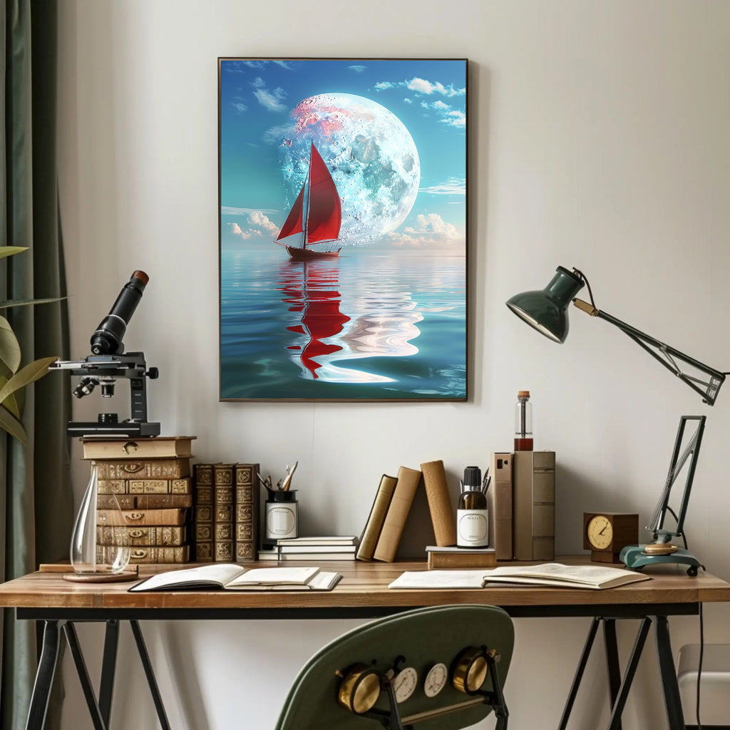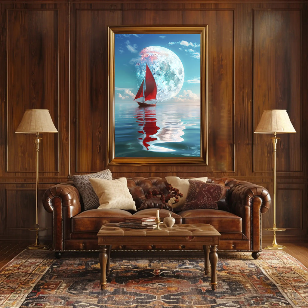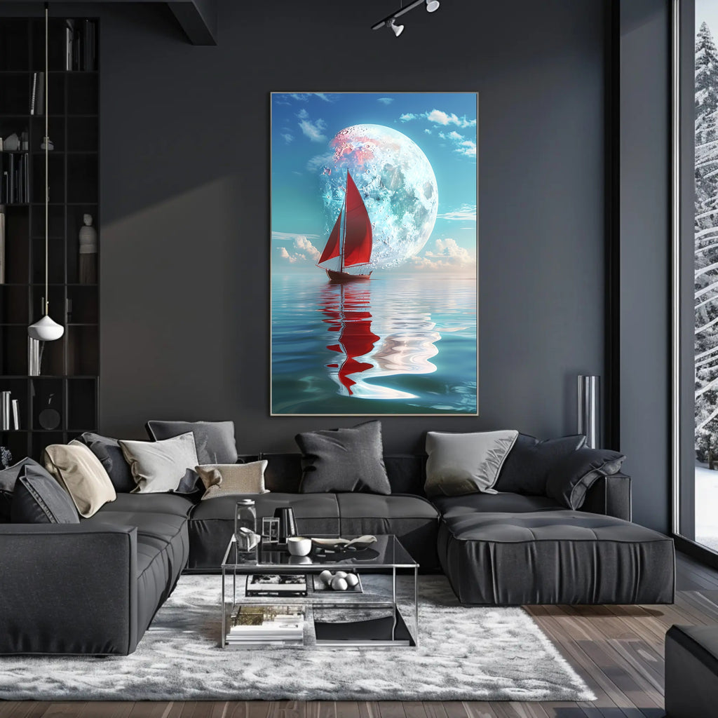 - Standout focal point: A bold red sailboat and luminous moon provide contrast and depth, drawing the eye and adding a touch of mystery and adventure to any room.