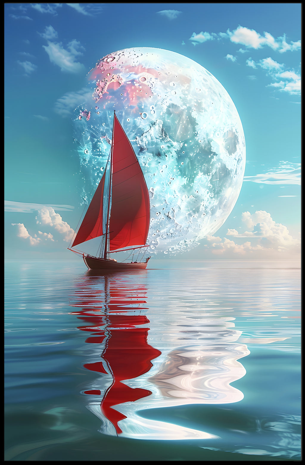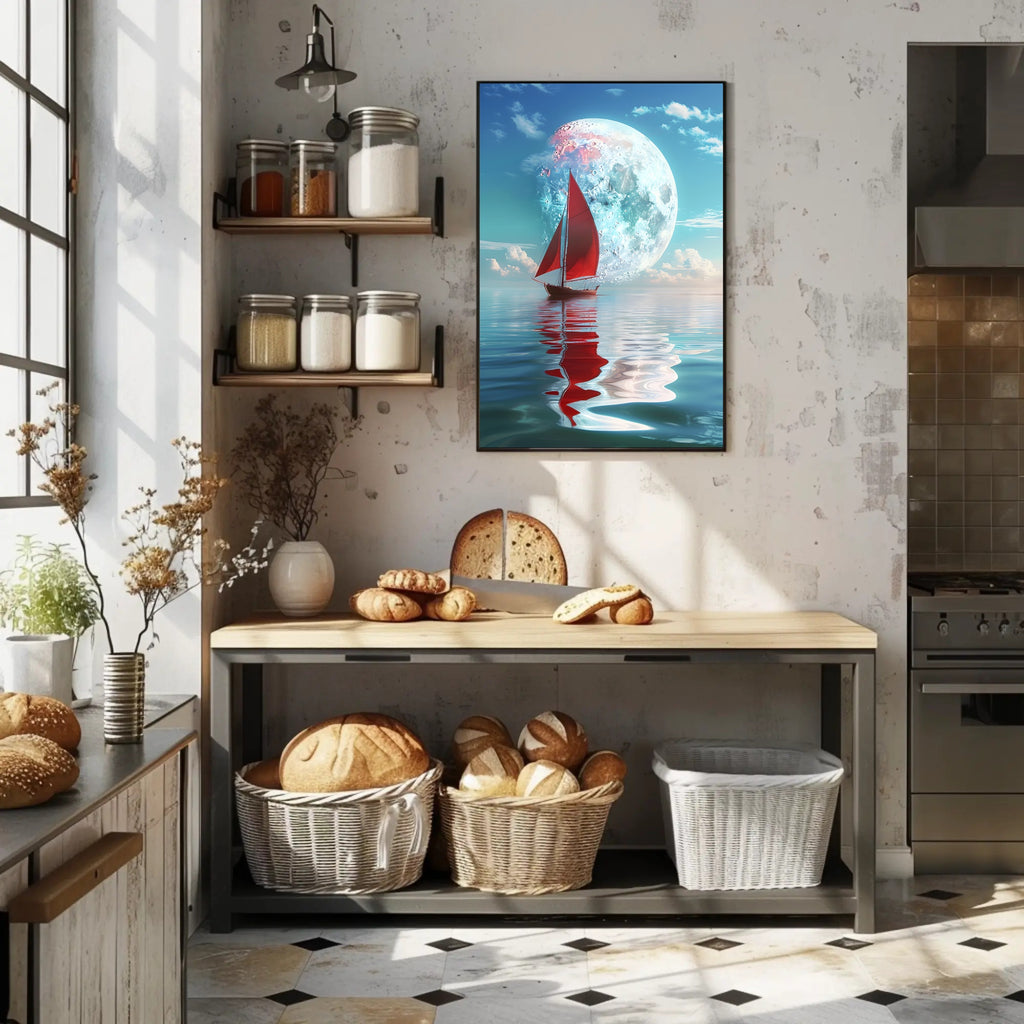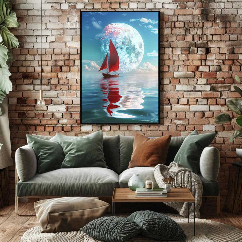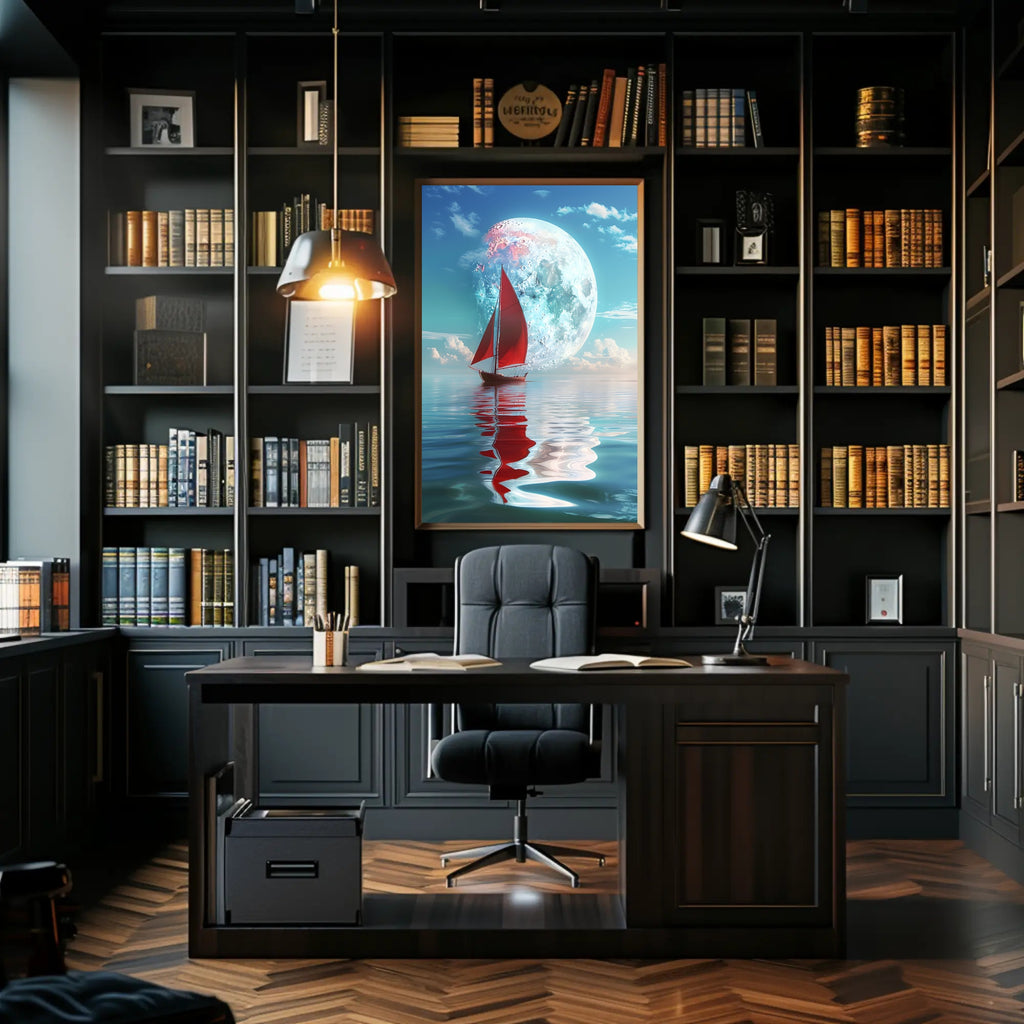 - Standout focal point: A bold red sailboat and luminous moon provide contrast and depth, drawing the eye and adding a touch of mystery and adventure to any room.